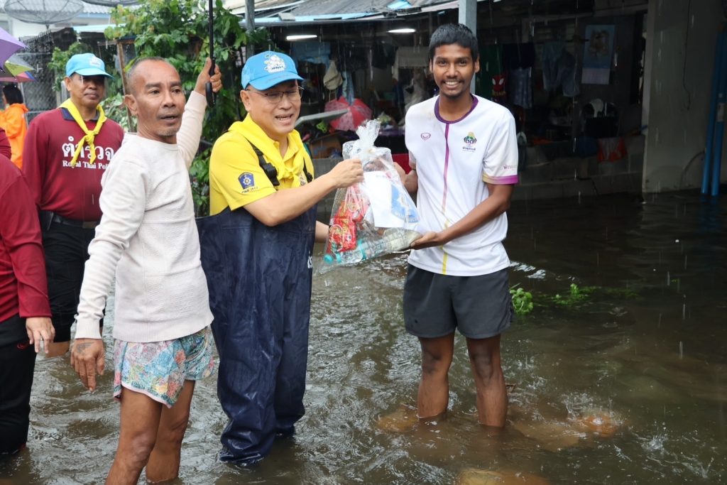 วันที่ 28 พ.ย.67 เวลา 15.00 น. พล.ต.ต.สันทัศน์ เชื้อพุฒตาล ผบก.ภ.จว.ปัตตานี, พ.ต.อ.เกียรติศักดิ์ กสิคุณ ผกก.ฝอ.ภ.จว.ปัตตานี, พ.ต.อ.เจฟฟรีย์ ไศลมานกุล ผกก.สภ.เมืองปัตตานี ดำเนินการจัดกิจกรรมจิตอาสาภัยพิบัติ ช่วยเหลือข้าราชการตำรวจ สภ.เมืองปัตตานี จากเหตุอุทกภัย พร้อมมอบถุงยังชีพ จำนวน 100 ถุง และยาสามัญประจำบ้านให้แก่กำลังพลและประชาชนบริเวณรอบข้าง เพื่อบรรเทาทุกข์และเป็นขวัญกำลังใจ ณ บริเวณเเฟลตตำรวจ สภ.เมืองปัตตานี