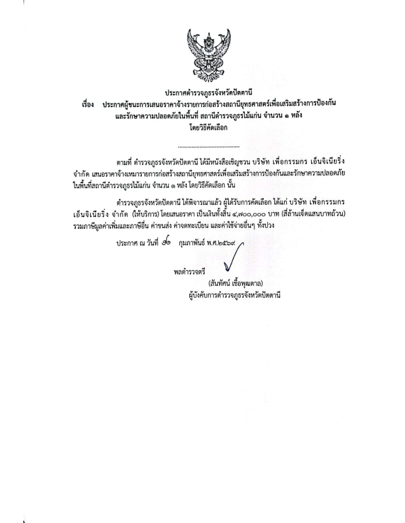 จ้างรายการก่อสร้างสถานียุทธศาสตร์เพื่อเสริมสร้างการป้องกันและรักษาความปลอดภัยในพื้นที่ สถานีตำรวจภูธรไม้แก่น 22 กุมภาพันธ์ 2026 โดย pattani / ข่าวจัดซื้อจัดจ้าง