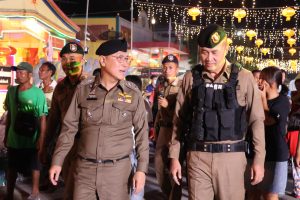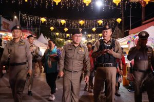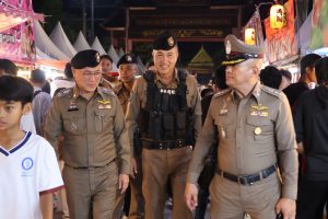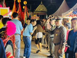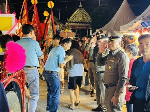 เมื่อวันที่ 1 มี.ค.69 เวลา 20.00 น. พล.ต.ต.สันทัศน์ เชื้อพุฒตาล ผบก.ภ.จว.ปัตตานี, พ.ต.อ.ศุภกร พึ่งรศ รอง ผบก.ภ.จว.ปัตตานี, พ.ต.อ.เจฟฟรีย์ ไศลมานกุล ผกก.สภ.เมืองปัตตานี ได้ออกตรวจการปฏิบัติหน้าที่ของเจ้าหน้าที่ตำรวจในงาน กตัญญูคู่ฟ้า มหาสมโภชเจ้าแม่ลิ้มกอเหนี่ยวปัตตานี ประจำปี 2569 เพื่อดูแลความสงบเรียบร้อย และความปลอดภัยรวมทั้งอำนวยความสะดวกการจราจรให้แก่ประชาชน ณ ศาลเจ้าเล่งจูเกียง อ.เมือง จว.ปัตตานี