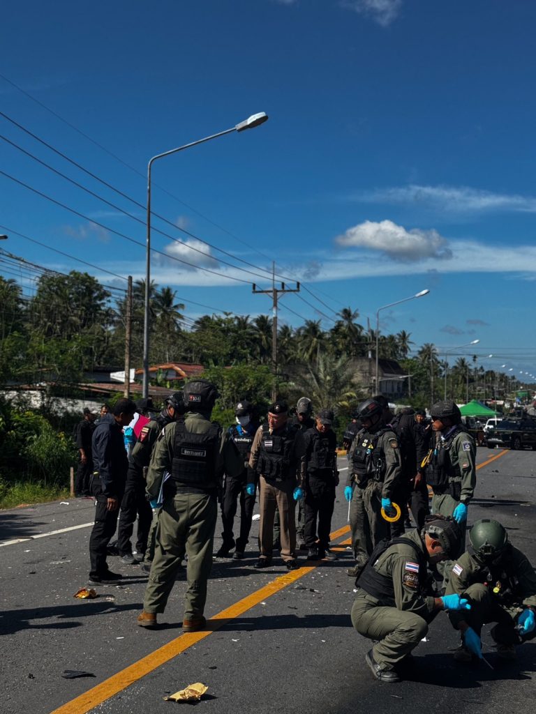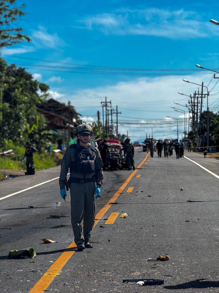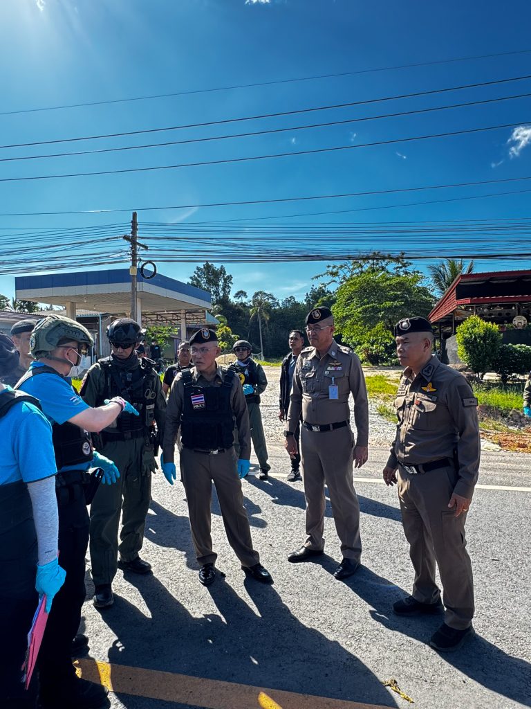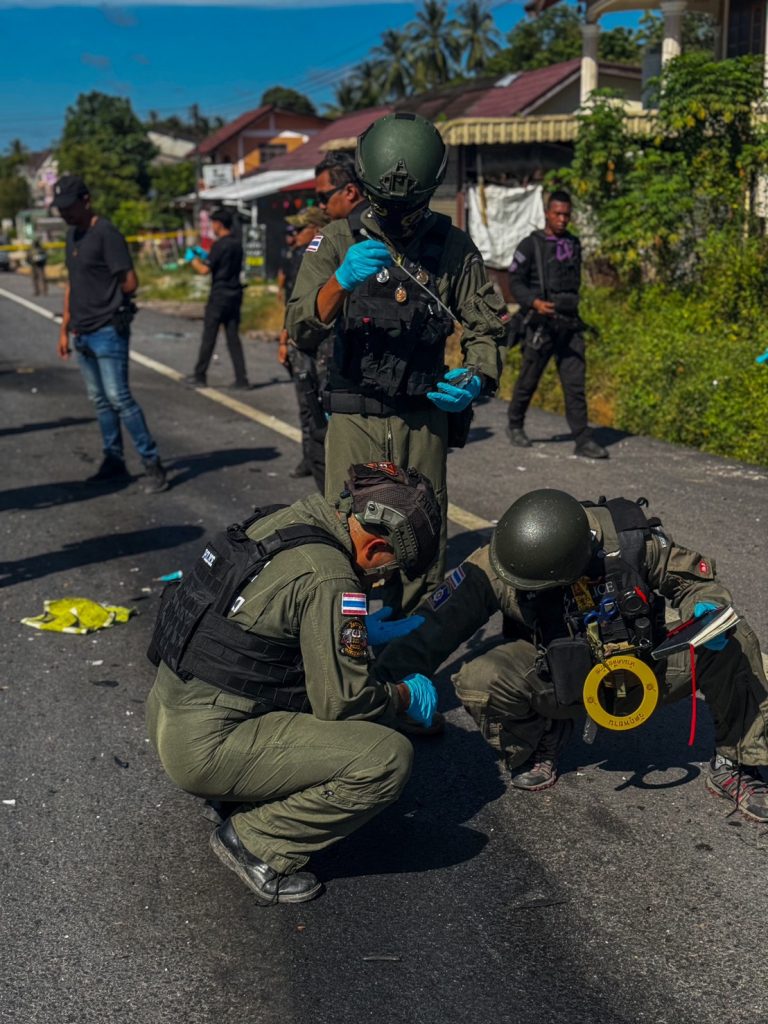 วันที่ 17 มี.ค.68 เวลา 14.00 น. พล.ต.ต.สันทัศน์ เชื้อพุฒตาล ผบก.ภ.จว.ปัตตานี, พ.ต.อ.กองอรรถ สุวรรณขำ รอง ผบก.ภ.จว.ปัตตานี, พ.ต.อ.ศุภกร พึ่งรศ รอง ผบก.ภ.จว.ปัตตานี, พ.ต.อ.สุรนาท วงศ์พรหมชัย นวท.(สบ5)ศพฐ., พ.ต.อ.สินชัย พาบับพา ผกก.สภ.กะพ้อ, พ.ต.อ.นิวัฒน์ ฐิตพินัธกลุ ผกก.พิสูจน์หลักฐาน พร้อมด้วยส่วนเกี่ยวข้อง ร่วมประชุมวางแผนและเข้าตรวจสอบที่เกิดเหตุคนร้ายลอบวางระเบิดเจ้าหน้าที่ อส.อ.กะพ้อ ขณะขับขี่รถยนต์ บริเวณถนน 4060 ม.2 ต.กะรุบี อ.กะพ้อ จว.ปัตตานี