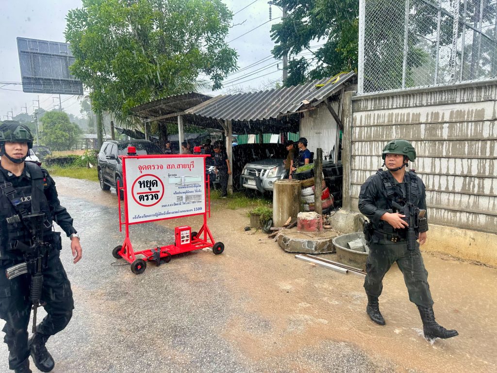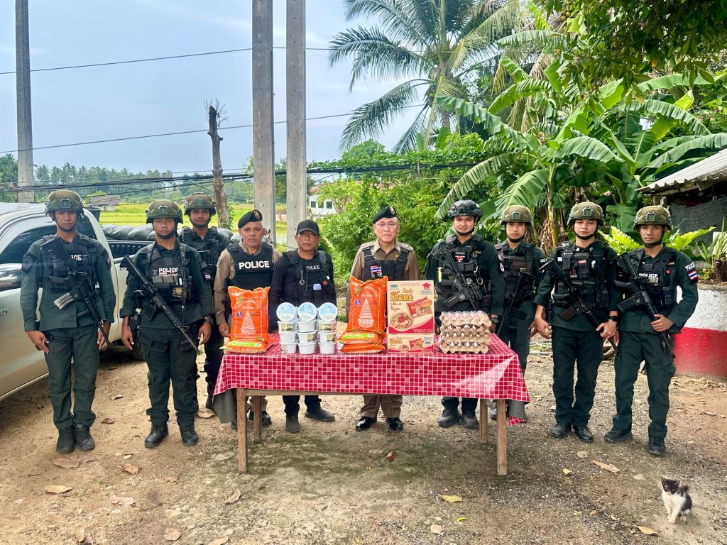 เมื่อวันที่ 11 พ.ย.68 เวลา 13.00 น. พล.ต.ท.ปิยะวัฒน์ เฉลิมศรี ผบช.ภ.9 ได้มอบหมายให้ พล.ต.ต.สันทัศน์ เชื้อพุฒตาล ผบก.ภ.จว.ปัตตานี, พ.ต.ท.ศิริชัย สุขสารัญ รอง ผกก.สส.สภ.สายบุรี เดินทางตรวจเยี่ยมจุดตรวจยุทธศาสตร์กะลาพอ พร้อมมอบสิ่งของอุปโภคบริโภคแก่เจ้าหน้าที่เพื่อเป็นขวัญกำลังใจ และกำชับการปฏิบัติตามข้อสั่งการของผู้บังคับบัญชา