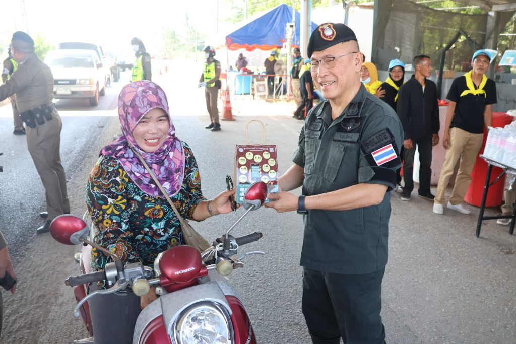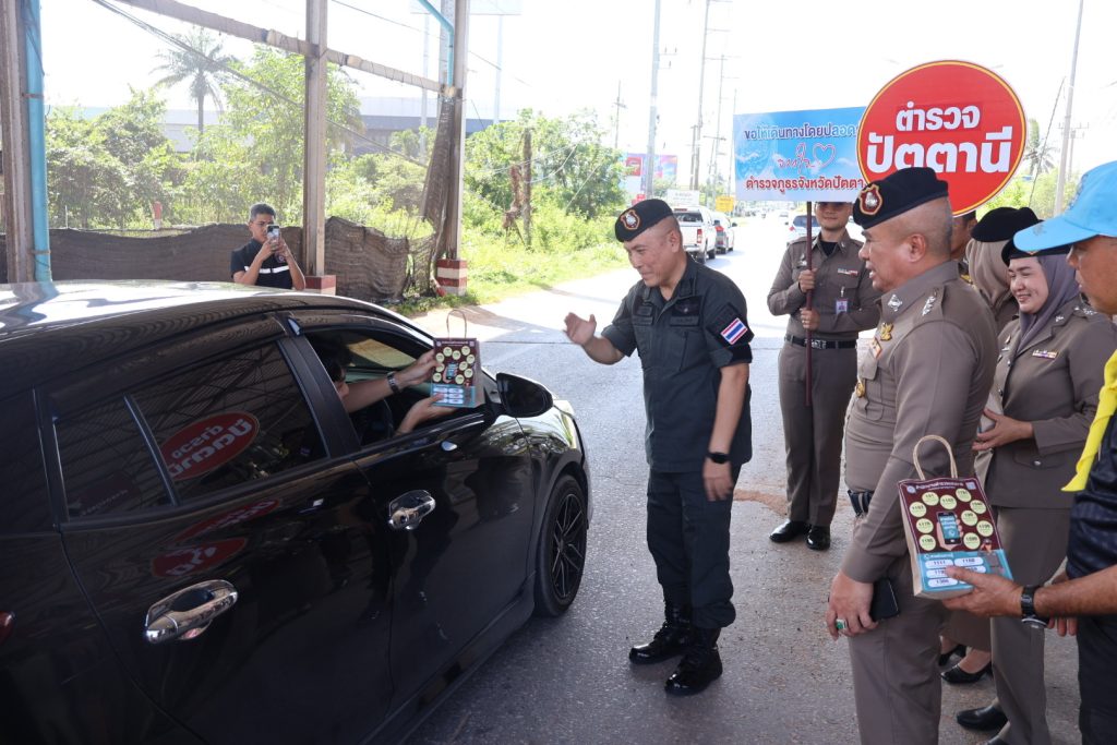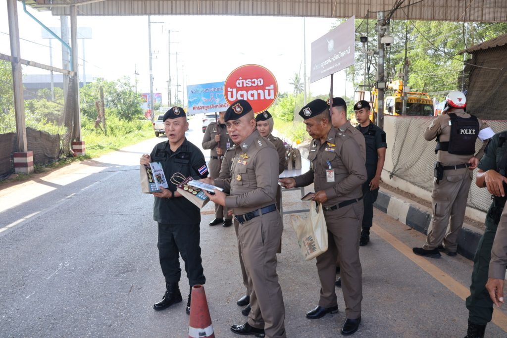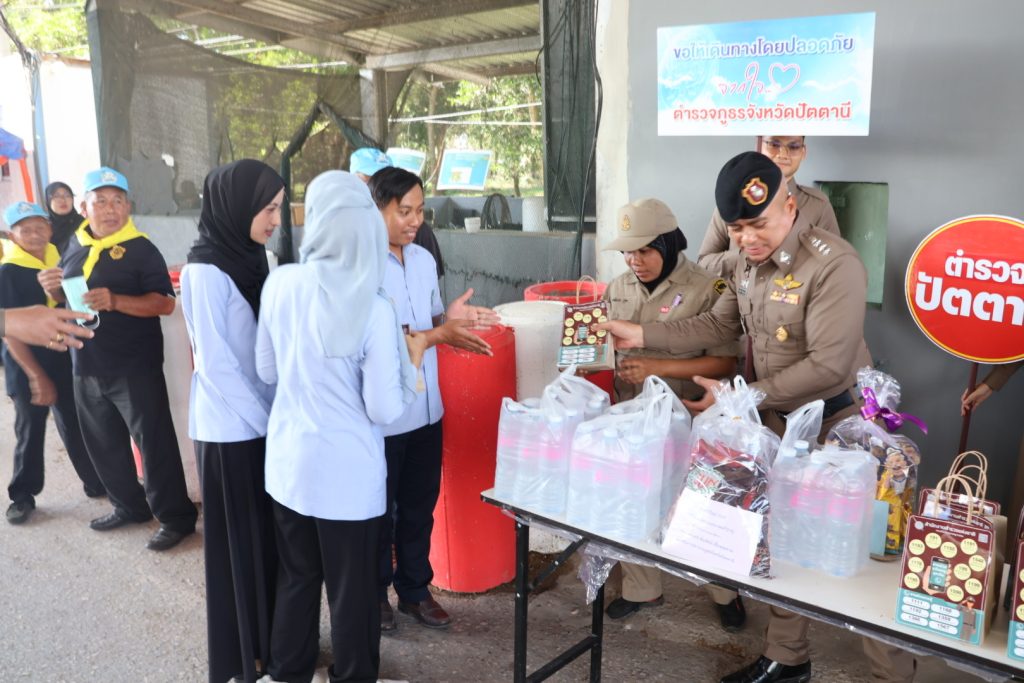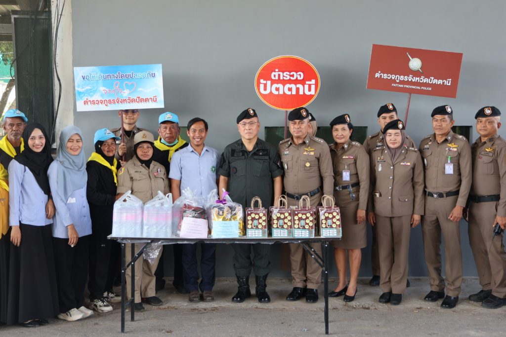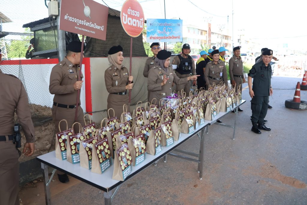 เมื่อวันที่ 30 ธ.ค.68 เวลา 14.30 น. พล.ต.ต.สันทัศน์ เชื้อพุฒตาล ผบก.ภ.จว.ปัตตานี, พ.ต.อ.เจฟฟรีย์ ไศลมานกุล ผกก.สภ.เมืองปัตตานี, พ.ต.อ.หญิง ปิยาพรรณ ด้วงทอง ผกก.ฝอ.ภ.จว.ปัตตานี พร้อมข้าราชการตำรวจภูธรจังหวัดปัตตานี และ สภ.เมืองปัตตานี ร่วมตรวจเยี่ยม มอบอาหารและเครื่องดื่มแก่จุดตรวจร่วมบูรณาการป้องกันและลดอุบัติเหตุทางถนนช่วงเทศกาลปีใหม่ และมอบน้ำดื่ม ขนม และคู่มือประชาชนตามนโยบายสำนักงานตำรวจแห่งชาติแก่ประชาชนผู้ใช้รถใช้ถนน ณ มว.ฉก.นปพ.ปน.11 ปราการ 1 (จุดตรวจดอนรัก)