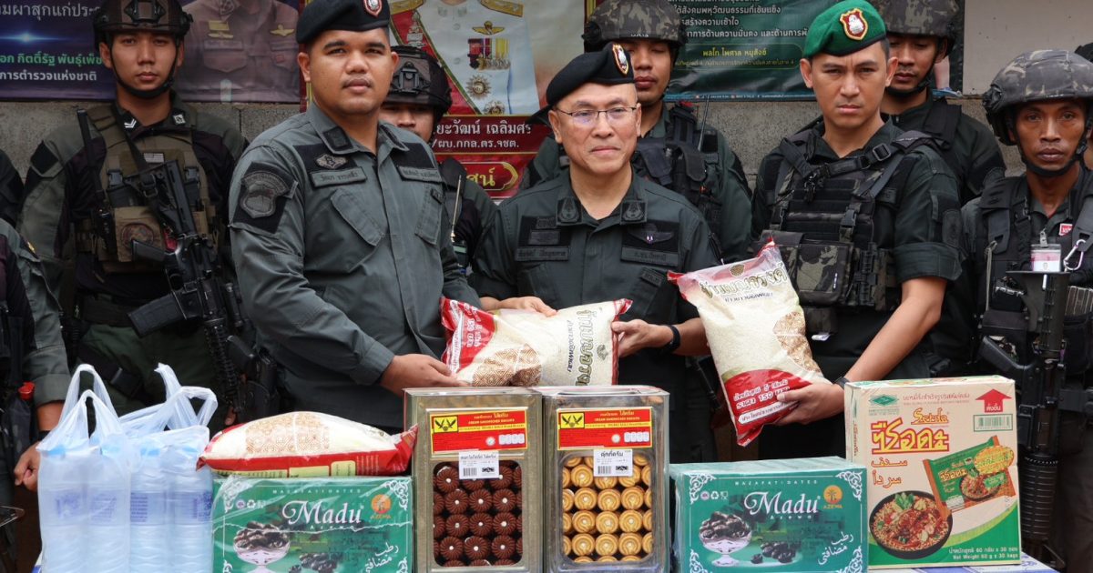 วันที่ 20 มี.ค.68 พล.ต.ต.สันทัศน์ เชื้อพุฒตาล ผบก.ภ.จว.ปัตตานี, ว่าที่ พ.ต.อ.ฟาฮามี เฮ็งปิยา ผกก.ปพ.ภ.จว.ปัตตานี ตรวจเยี่ยมพร้อมมอบสิ่งของยังชีพ อาหาร และน้ำดื่ม เพื่อเป็นขวัญกำลังใจให้กับกำลังพล พร้อมทั้งมอบอินทผาลัมเพื่อนำไปแจกจ่ายให้แก่พี่น้องชาวมุสลิมเนื่องในเดือนรอมฎอนต่อไป