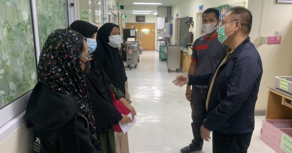 หน้าโรงเรียนบ้านกะลาพอ ต.เตราะบอน อ.สายบุรี จว.ปัตตานี ณ โรงพยาบาลสงขลานครินทร์ อ.หาดใหญ่ จว.สงขลา