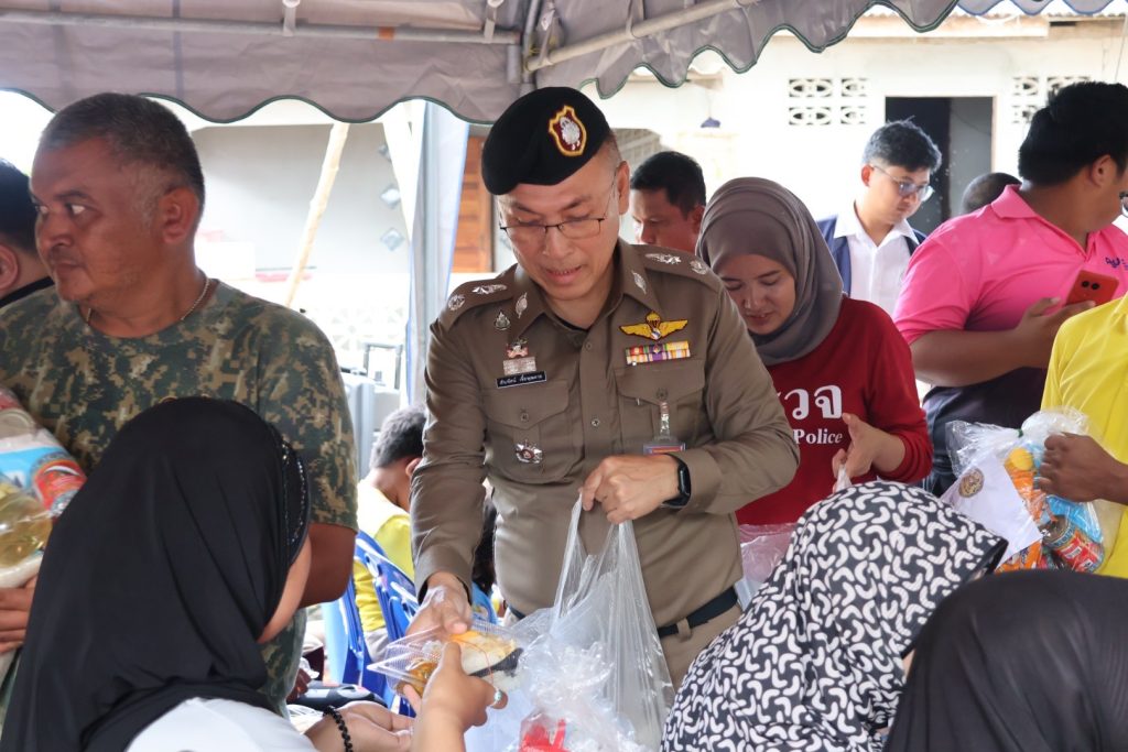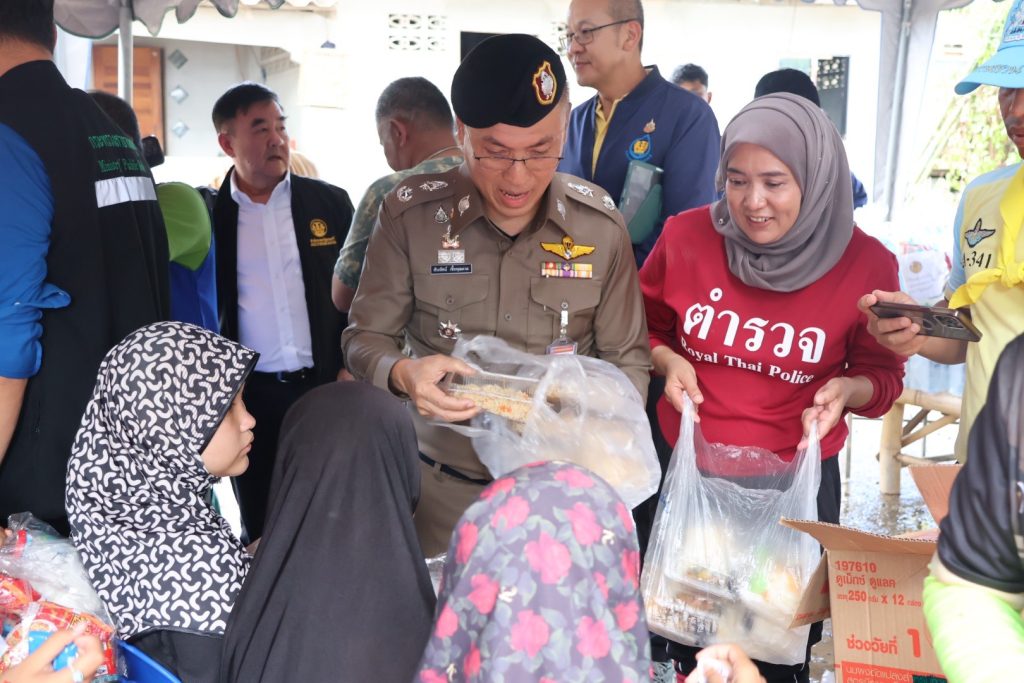 วันที่ 6 ธ.ค.67 เวลาประมาณ 13.40 น. ภายใต้การอำนวยการของ พล.ต.ท.ปิยะวัฒน์ เฉลิมศรี ผบช.ภ.9 มอบหมายให้ พล.ต.ต.สันทัศน์ เชื้อพุฒตาล ผบก.ภ.จว.ปัตตานี พร้อมด้วยข้าราชการตำรวจภูธรจังหวัดปัตตานี โดย พล.ต.ท.ปิยะวัฒน์ เฉลิมศรี ผบช.ภ.9 ได้ให้การสนับสนุนอาหาร นํ้าดื่ม และจัดเตรียมรถครัวสนาม, วัตถุดิบในการประกอบอาหาร ร่วมประกอบอาหาร และนำข้าวกล่องออกแจกจ่ายเพื่อช่วยเหลือผู้ประสบอุทกภัยในพื้นที่ และได้มอบให้ผู้ใหญ่บ้าน ม.2 บ้านยือโมะ ต.ปะกาฮารัง อ.เมือง จว.ปัตตานี เพื่อนำไปแจกจ่ายให้แก่ลูกบ้านต่อไป