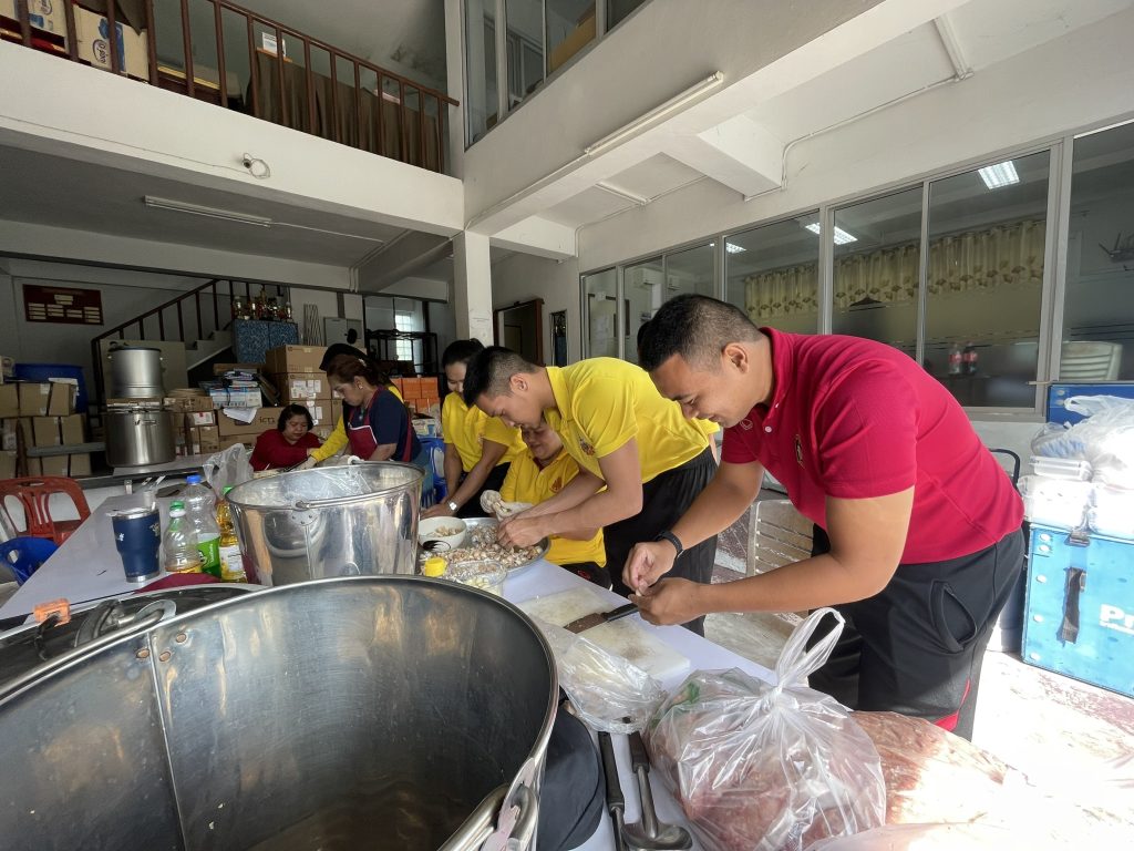 นํ้าดื่ม และจัดเตรียมรถครัวสนาม, วัตถุดิบในการประกอบอาหาร ร่วมประกอบอาหาร และนำออกแจกจ่ายเพื่อช่วยเหลือ