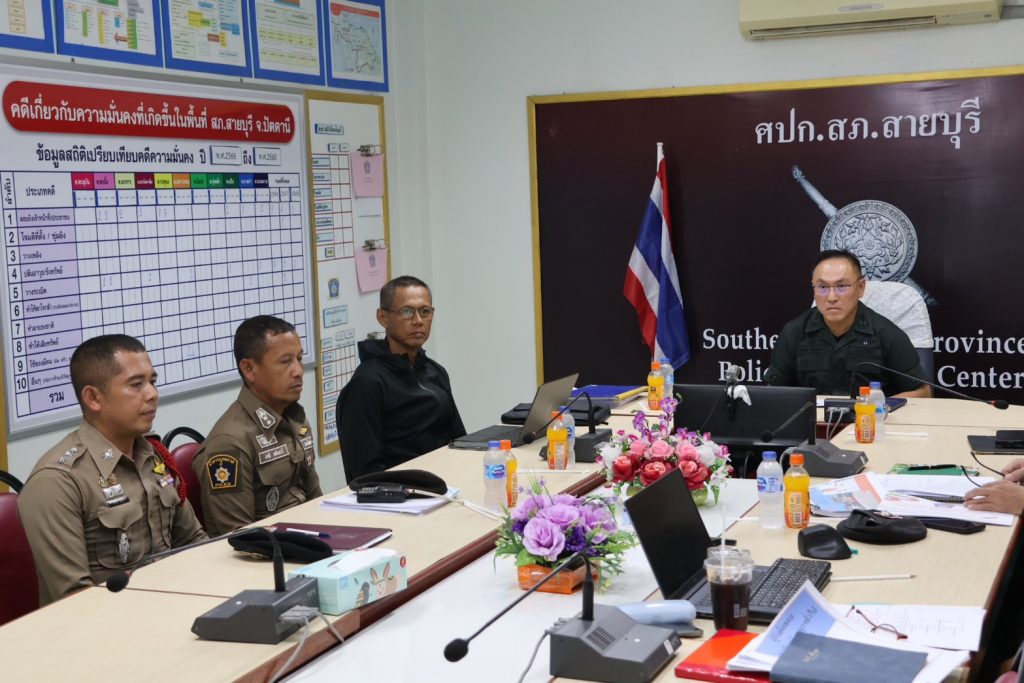 วันที่ 9 มี.ค.68 เวลา 14.00 น. พล.ต.ต.สันทัศน์ เชื้อพุฒตาล ผบก.ภ.จว.ปัตตานี, พ.ต.อ.ศุภกร พึ่งรศ รอง ผบก.ภ.จว.ปัตตานี, พ.ต.อ.คมกฤช ศรีสงค์ รอง ผบก.ภ.จว.ปัตตานี, พ.ต.อ.ธีรพจน์ ยินดี ผกก.สภ.สายบุรี, พ.ต.อ.ธัชชัย พงศ์มานะวุฒิ ผกก.สส.ภ.จว.ปัตตานี พร้อมส่วนเกี่ยวข้อง ได้ร่วมประชุมแนวทางการสืบสวนสอบสวน เหตุคนร้ายลอบวางระเบิดในพื้นที่ สภ.สายบุรี ณ ห้องประชุม ศปก.สภ.สายบุรี