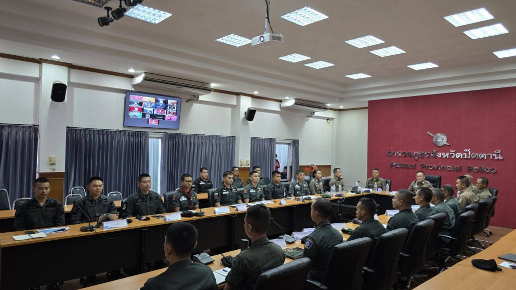 วันที่ 9 ก.ค.68 เวลา 11.00 น. พล.ต.ต.สันทัศน์ เชื้อพุฒตาล ผบก.ภ.จว.ปัตตานี, พ.ต.อ.กองอรรถ สุวรรณขำ รอง ผบก.ภ.จว.ปัตตานี, พ.ต.อ.ประยงค์ โคตรสาขา รอง ผบก.ภ.จว.ปัตตานี, พ.ต.อ.พงษ์พันธ์ จันทรอาภา รอง ผบก.ภ.จว.ปัตตานี, พ.ต.อ.ศุภกร พึ่งรศ รอง ผบก.ภ.จว.ปัตตานี, พ.ต.อ.คมกฤช ศรีสงค์ รอง ผบก.ภ.จว.ปัตตานี, พ.ต.อ.ฟาฮามี เฮ็งปิยา ผกก.ปพ.ภ.จว.ปัตตานี พร้อมด้วย ผบ.มว.นปพ.ในสังกัด ภ.จว.ปัตตานี และ งานส่งกำลังบำรุง ภ.จว.ปัตตานี ร่วมประชุมกับ หน.สภ.,หน.หน่วยในสังกัด ผ่านระบบ Zoom เพื่อกำชับให้กำลังพลทุกนายต้องสวมเสื้อเกราะกันกระสุนทุกครั้งในขณะออกไปปฏิบัติหน้าที่ ตามวิทยุในสำนักงานตำรวจแห่งชาติ ด่วนที่สุด ที่ นร. 5119.3(กกล.ตร.).133/638 ลง 7 ก.ค.68และต้องมีอาวุธ และอุปกรณ์ประจำกายให้มีความพร้อม รวมถึงแผน/มาตรการป้องกันที่ตั้ง มว.ฉก.นปพ.ในสังกัด และมอบเลื่อยโซ่ยนต์ให้แก่ มว.ฉก.นปพ.ปัตตานี 33 (กะพ้อ) ณ ห้องประชุม ภ.จว.ปัตตานี