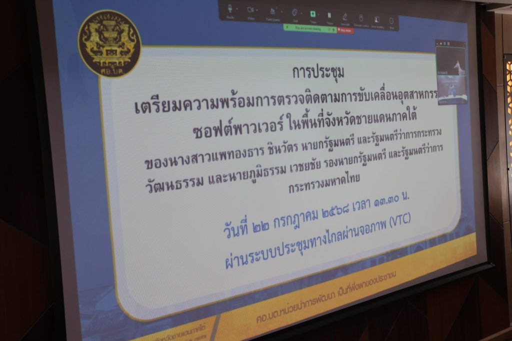 วันที่ 22 ก.ค.68 เวลา 15.00 น. พล.ต.ต.สันทัศน์ เชื้อพุฒตาล ผบก.ภ.จว.ปัตตานี, พ.ต.อ.ประยงค์ โคตรสาขา รอง ผบก.ภ.จว.ปัตตานี, พ.ต.อ.เจฟฟรีย์ ไศลมานกุล ผกก.สภ.เมืองปัตตานี, พ.ต.อ.ฟาฮามี เฮ็งปิยา ผกก.ปพ.ภ.จว.ปัตตานี พร้อมด้วยหัวหน้าส่วนราชการที่เกี่ยวข้อง ร่วมประชุมเตรียมการต้อนรับ นางสาวแพทองธาร ชินวัตร นายกรัฐมนตรี และรัฐมนตรีว่าการกระทรวงวัฒนธรรม และ นายภูมิธรรม เวชยชัย รองนายกรัฐมนตรี และรัฐมนตรีว่าการกระทรวงมหาดไทย โดยมี นางพาตีเมาะ สะดียามู ผู้ว่าราชการจังหวัดปัตตานี เป็นประธาน ณ ห้องประชุมศูนย์ปฏิบัติการฉุกเฉิน สำนักงานป้องกันและบรรเทาสาธารณภัยจังหวัดปัตตานี
