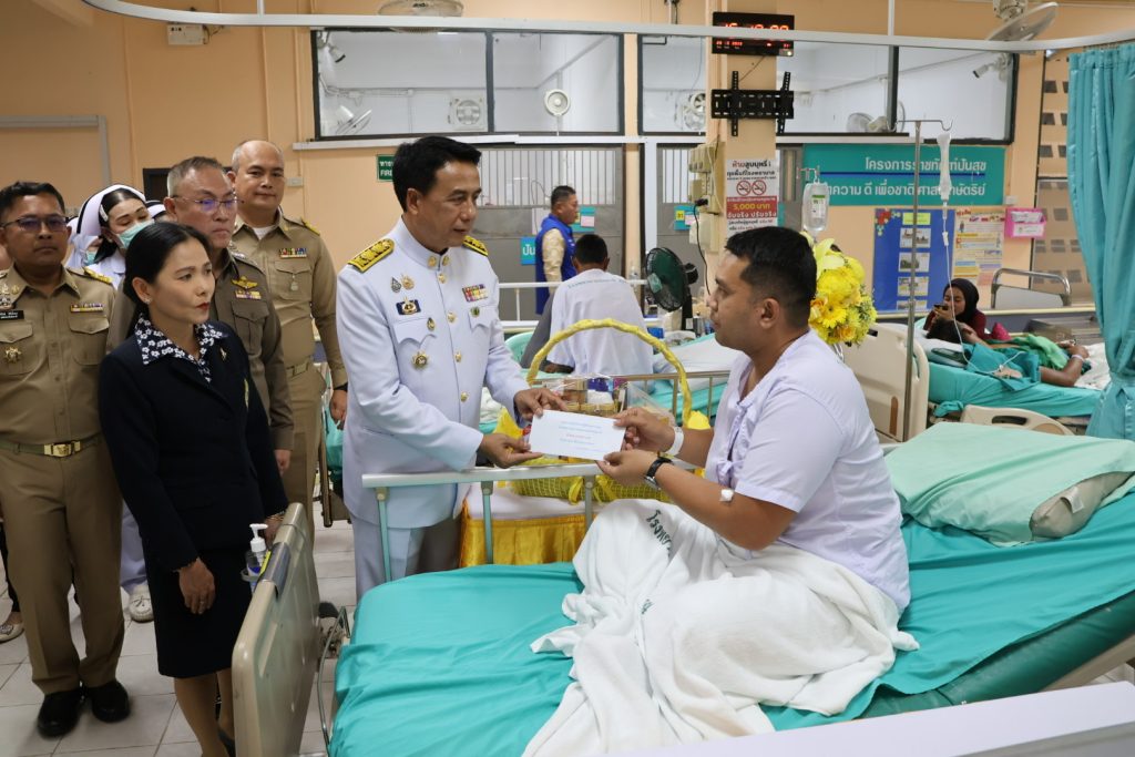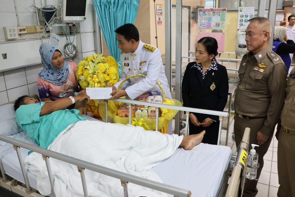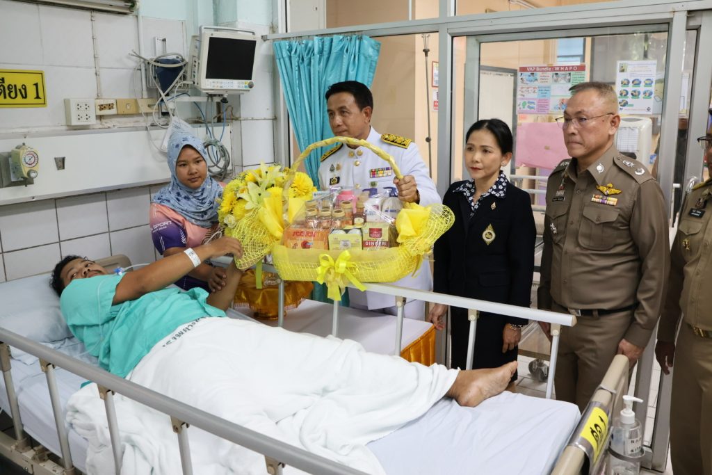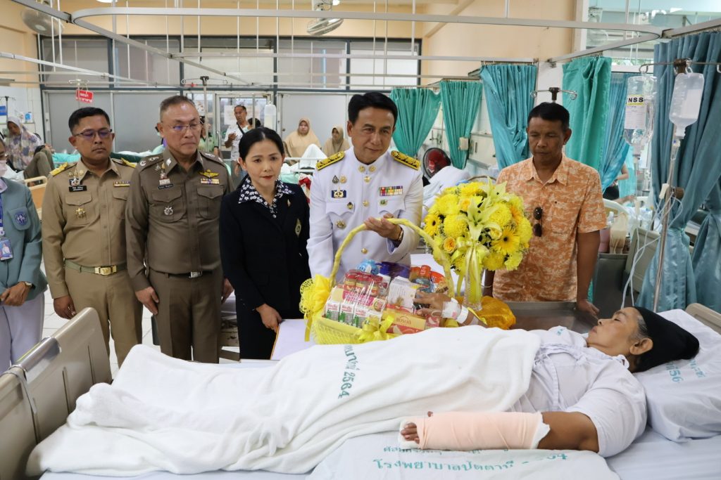 วันที่ 20 มิ.ย.68 เวลา 15.30 น. พล.ต.ต.สันทัศน์ เชื้อพุฒตาล ผบก.ภ.จว.ปัตตานี ร่วมเชิญแจกันและตะกร้าสิ่งของพระราชทานเยี่ยมผู้ได้รับบาดเจ็บจากเหตุคนร้ายลอบวางระเบิดบริเวณงานแสดงสินค้า วัฒนธรรม และของดีประจำจังหวัดปัตตานีประจำปี 2568 โดยมี นายไชยพร นิยมแก้ว รองผู้ว่าราชการจังหวัดปัตตานี เป็นประธาน ณ โรงพยาบาลปัตตานี