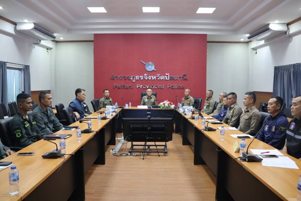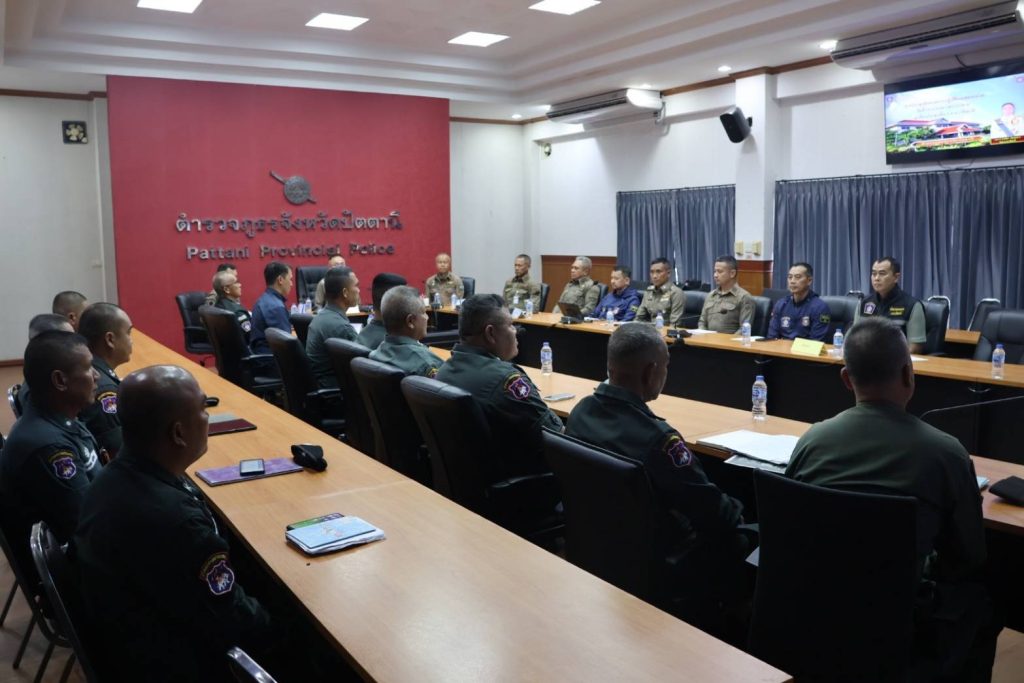 วันที่ 19 ม.ค.68 เวลา 13.30 น. พล.ต.ต.สันทัศน์ เชื้อพุฒตาล ผบก.ภ.จว.ปัตตานี, พ.ต.อ.ประยงค์ โคตรสาขา รอง ผบก.ภ.จว.ปัตตานี, พ.ต.อ.พงษ์พันธ์ จันทรอาภา รอง ผบก.ภ.จว.ปัตตานี, พ.ต.อ.คมกฤช ศรีสงค์ รอง ผบก.ภ.จว.ปัตตานี, พ.ต.อ.กองทัพ เสนาทิพย์ ผกก.ปพ.ภ.จว.ปัตตานี/ผบ.ฉก.ตร.ป.น.92, พ.ต.อ.เจฟฟรีย์ ไศลมานกุล ผกก.สภ.เมืองปัตตานี พร้อมด้วย รอง ผกก.ป.สภ.เมืองปัตตานี, รอง ผกก.สส.เมืองปัตตานี, ผู้แทน กก.สส.ฯ, รอง ผบ.ฉก.ตร.ป.น.92 ร่วมประชุมแผนรักษาความปลอดภัยเมืองปัตตานี และประชุมติดตามคดีสำคัญ กรณีเหตุคนร้ายลอบวางระเบิด บริเวณซอยปัตตานีรามา ข้างที เค ปาร์ค เมื่อวันที่ 13 ม.ค.68 และเหตุคนร้ายลอบวางระเบิด บริเวณหน้าฐานปฏิบัติการ มว.ฉก.ตชด.9223 (กรือเซะ) เมื่อวันที่ 18 ม.ค.68 โดยมี พล.ต.ต.สันทัศน์ เชื้อพุฒตาล ผบก.ภ.จว.ปัตตานี เป็นประธาน