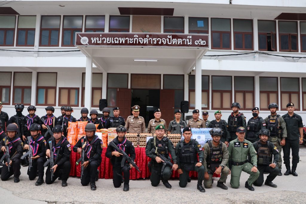 เมื่อวันที่ 23 ต.ค.68 เวลา 13.30 น. พล.ต.ท.ปิยะวัฒน์ เฉลิมศรี ผบช.ภ.9, พล.ต.ต.สันทัศน์ เชื้อพุฒตาล ผบก.ภ.จว.ปัตตานี, พ.ต.อ.สิทธิพงษ์ หัสรังษี รอง ผบก.ภ.จว.ปัตตานี, พ.ต.อ.ฟาฮามี เฮ็งปิยา ผกก.ปพ.ภ.จว.ปัตตานี, พ.ต.อ.เจฟฟรีย์ ไศลมานกุล ผกก.สภ.เมืองปัตตานี ร่วมมอบสิ่งของอุปโภคบริโภคซึ่งได้รับการสนับสนุนจาก พล.ต.ท.ปิยะวัฒน์ เฉลิมศรี ผบช.ภ.9 เพื่อเป็นขวัญและกำลังใจให้แก่ข้าราชการตำรวจหน่วยเฉพาะกิจตำรวจปัตตานี 92 และเจ้าหน้าที่ทหาร ฉก.ทพ.11 ในการปฏิบัติหน้าที่เตรียมความพร้อมในการรับเสด็จฯ ณ หน่วยเฉพาะกิจตำรวจปัตตานี 92