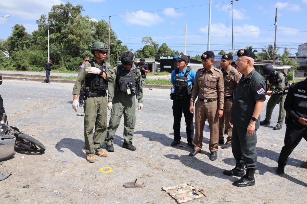 วันที่ 7 ก.พ.68 เวลา 10.00 น. พล.ต.ต.กฤษฎา แก้วจันดี รอง ผบช.ภ.9, พล.ต.ต.ธเรศ แก้วละเอียด รรท.รอง ผบช.ภ.9, พล.ต.ต.สันทัศน์ เชื้อพุฒตาล ผบก.ภ.จว.ปัตตานี, พ.ต.อ.กองอรรถ สุวรรณขำ รอง ผบก.ภ.จว.ปัตตานี, พ.ต.อ.พัฒนชัย ปาละสุวรรณ ผกก.สภ.หนองจิก พร้อมด้วยชุดพิสูจน์หลักฐาน, EOD และส่วนเกี่ยวข้อง ร่วมประชุมแนวทางการปฏิบัติก่อนเข้าที่เกิดเหตุ ต่อเนื่องร่วมเข้าตรวจสอบที่เกิดเหตุ/ปิดกั้นสถานที่ เหตุคนร้ายรอบวางระเบิดบริเวณถนนทางหลวงสาย 43 (ขาไปหาดใหญ่) ต.บ่อทอง อ.หนองจิก จว.ปัตตานี เพื่อเก็บพยานหลักฐาน ติดตามสืบหาคนร้ายต่อไป