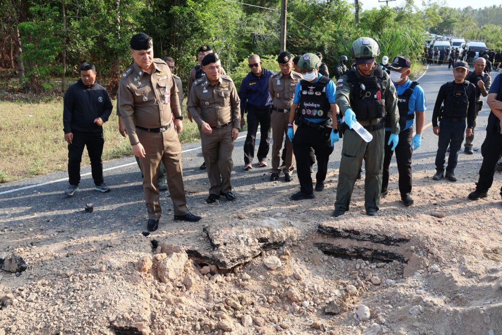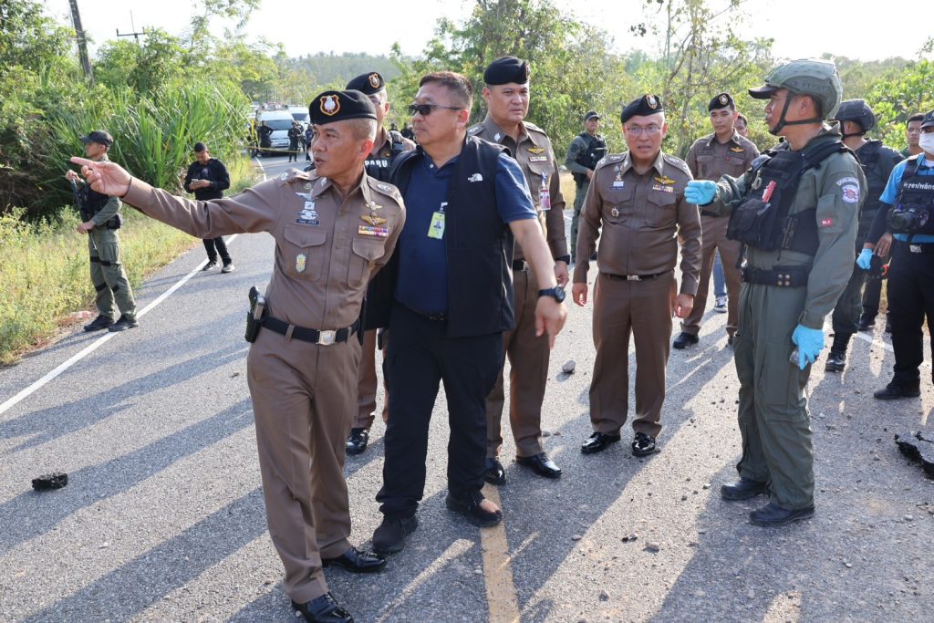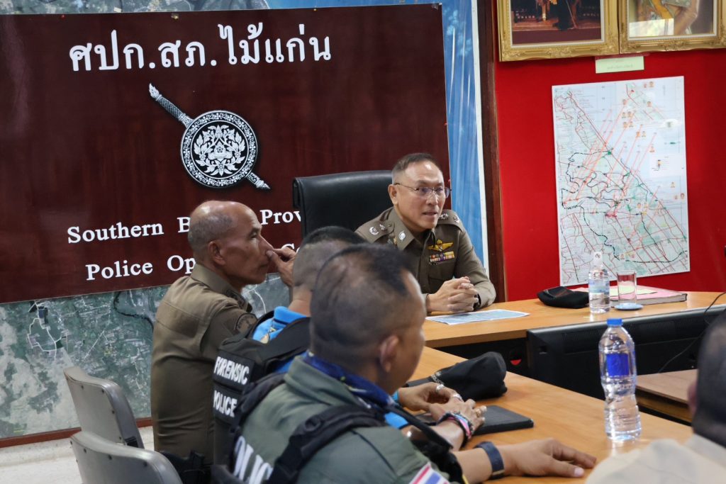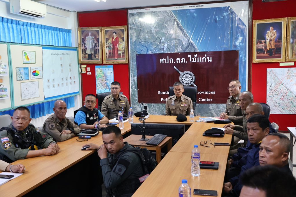 วันที่ 24 มี.ค.68 เวลาประมาณ 14.00 น. พล.ต.ต.กฤษฎา แก้วจันดี รอง ผบช.ภ.9, พล.ต.ต.วรา เวชชาภินันท์ รอง ผบช.ภ.9, พล.ต.ต.สันทัศน์ เชื้อพุฒตาล ผบก.ภ.จว.ปัตตานี, พ.ต.อ.สุรนาท วงศ์พรหมชัย นวท.(สบ5)ศพฐ.10, พ.ต.อ.นิวัฒน์ ฐิติพันธกุล นวท.(สบ 4) พฐ.จว.ปัตตานี, พ.ต.อ.อรรถวุฒิ เพชรแก้ว ผกก.สภ.ไม้แก่น พร้อมด้วยเจ้าหน้าที่ชุดพิสูจน์หลักฐาน, ชุดปฏิบัติการเก็บกู้วัตถุระเบิด (EOD), เจ้าหน้าที่ทหาร, ฝ่ายปกครอง และส่วนเกี่ยวข้อง ร่วมประชุมแนวทางการปฏิบัติก่อนเข้าพื้นที่เกิดเหตุและแนวทางการสืบสวนสอบสวน จากเหตุคนร้ายลอบวางระเบิดในพื้นที่ สภ.ไม้แก่น เหตุเกิดบนถนนหมายเลข 4136 (บริเวณทางโค้งก่อนถึง อบต.ดอนทราย) ม.2 ต.ดอนทราย อ.ไม้แก่น จว.ปัตตานี ณ สภ.ไม้แก่น จว.ปัตตานี