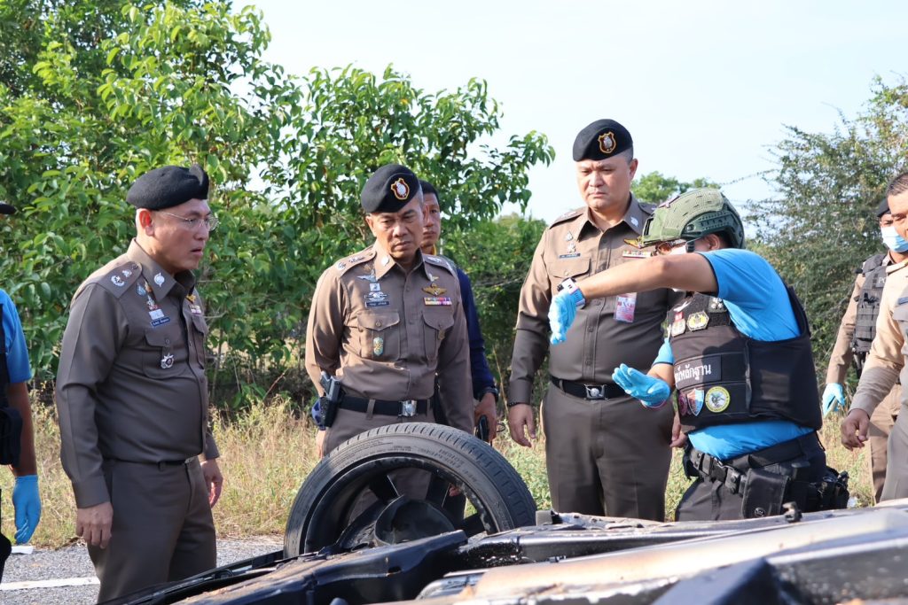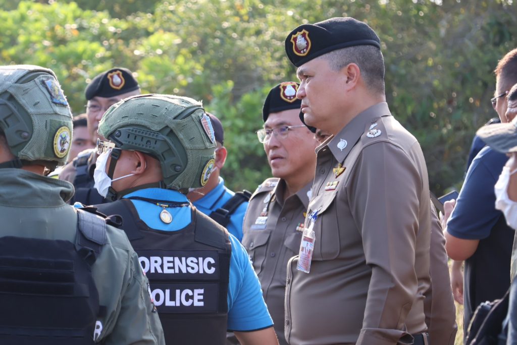 ต่อเนื่องเวลาประมาณ 14.00 น. พล.ต.ต.กฤษฎา แก้วจันดี รอง ผบช.ภ.9, พล.ต.ต.วรา เวชชาภินันท์ รอง ผบช.ภ.9, พล.ต.ต.สันทัศน์ เชื้อพุฒตาล ผบก.ภ.จว.ปัตตานี, พ.ต.อ.สุรนาท วงศ์พรหมชัย นวท.(สบ5)ศพฐ.10, พ.ต.อ.นิวัฒน์ ฐิติพันธกุล นวท.(สบ 4) พฐ.จว.ปัตตานี, พ.ต.อ.อรรถวุฒิ เพชรแก้ว ผกก.สภ.ไม้แก่น พร้อมด้วยเจ้าหน้าที่ชุดพิสูจน์หลักฐาน, ชุดปฏิบัติการเก็บกู้วัตถุระเบิด (EOD), เจ้าหน้าที่ทหาร, ฝ่ายปกครอง และส่วนเกี่ยวข้อง ร่วมเข้าตรวจสอบพื้นที่เกิดเหตุดังกล่าว เพื่อตรวจเก็บวัตถุพยานสืบสวนติดตามหาตัวคนร้ายต่อไป