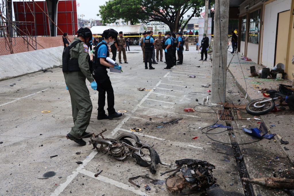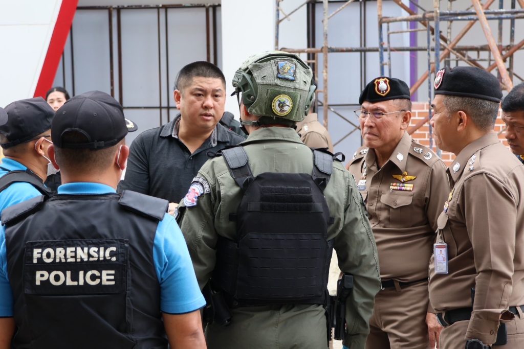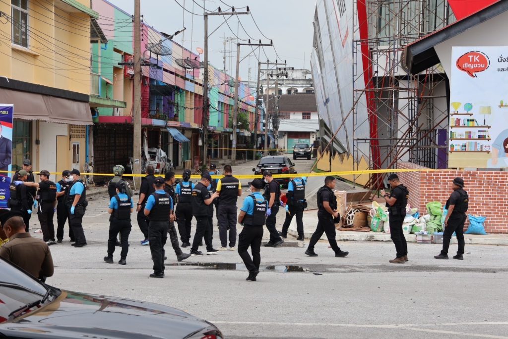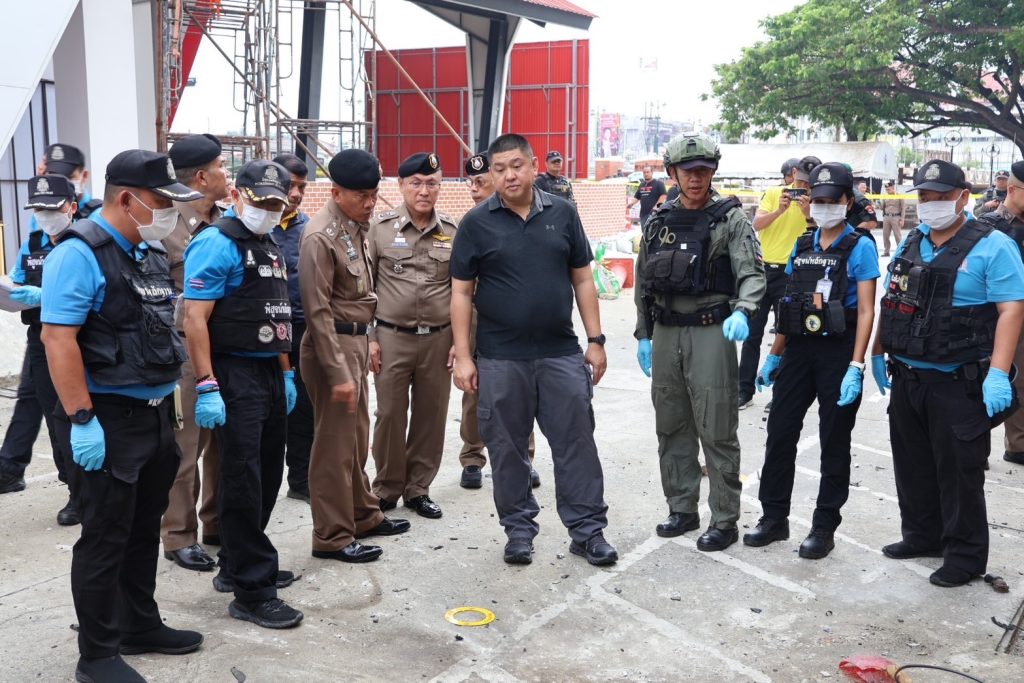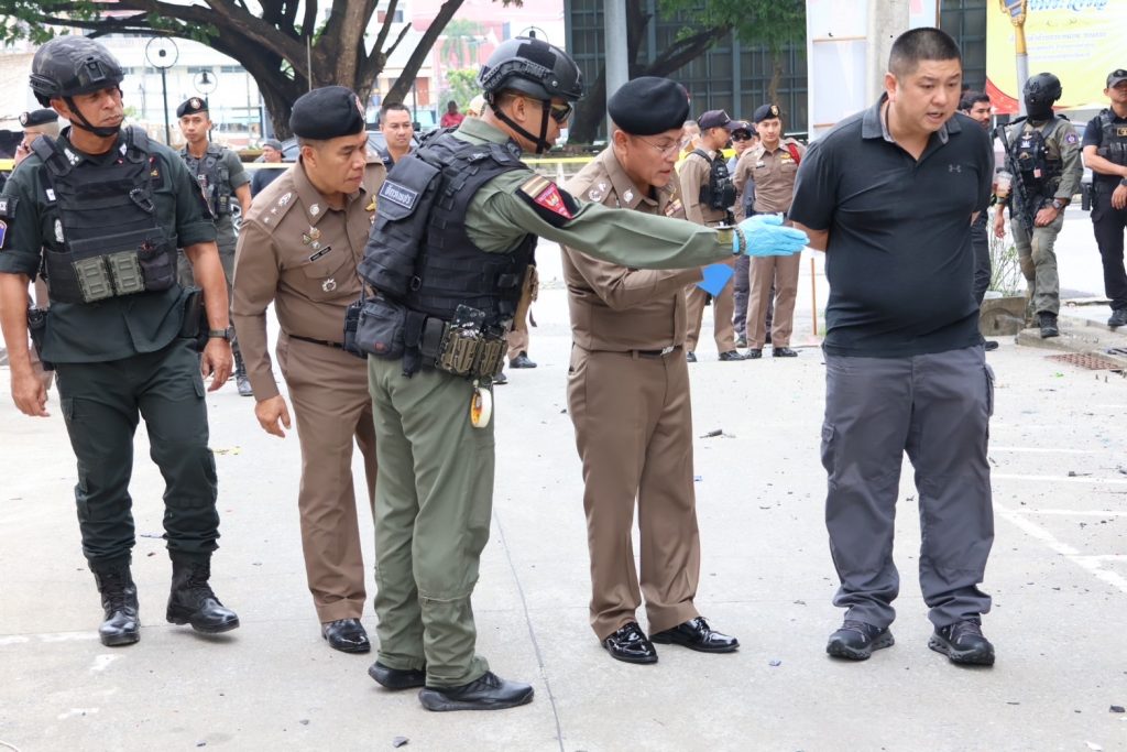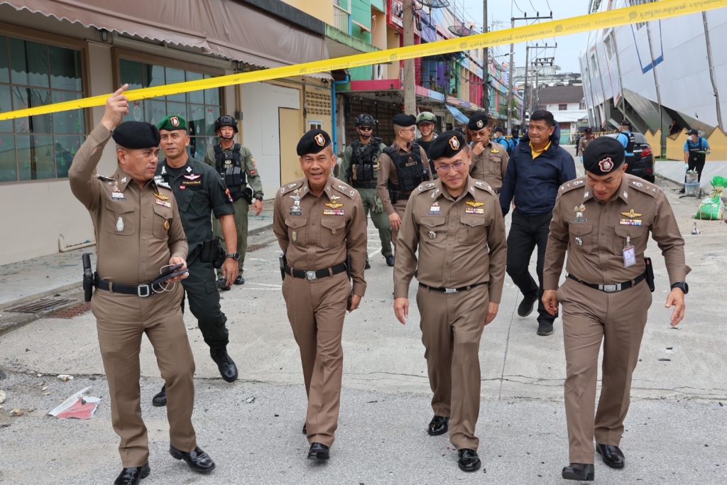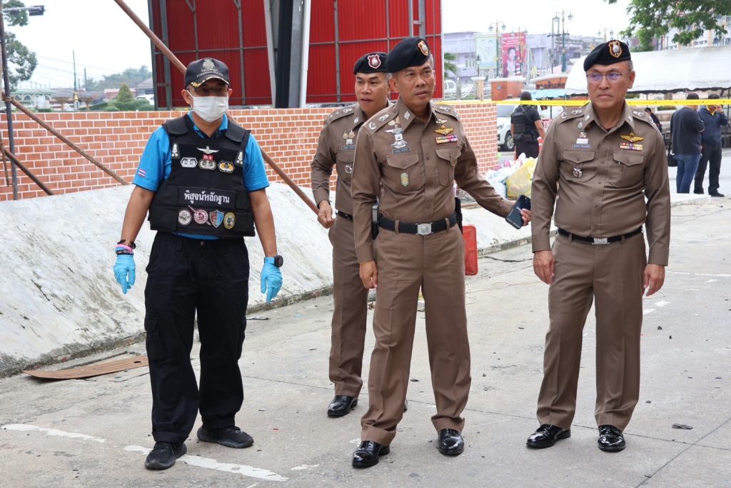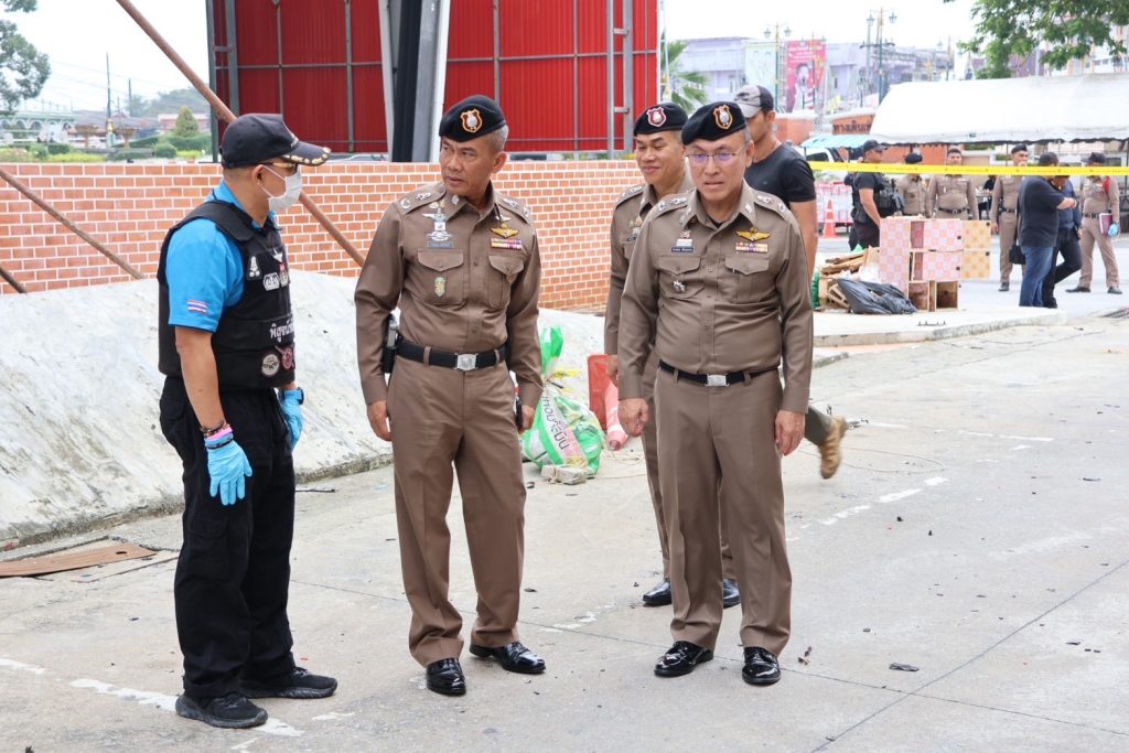 วันที่ 13 ม.ค.68 เวลาประมาณ 08.50 – 12.00 น. พล.ต.ต.กฤษฎา แก้วจันดี รอง ผบช.ภ.9, พล.ต.ต.สันทัศน์ เชื้อพุฒตาล ผบก.ภ.จว.ปัตตานี, พล.ต.ต.ชุมพล ศักดิ์สุรีย์มงคล ผบก.สส.จชต., พ.ต.อ.เอกชัย วิเชียร รอง ผบก.สส.จชต., พ.ต.อ.กองอรรถ สุวรรณขำ รอง ผบก.ภ.จว.ปัตตานี, พ.ต.อ.พงษ์พันธ์ จันทรอาภา รอง ผบก.ภ.จว.ปัตตานี, พ.ต.อ.เจฟฟรีย์ ไศลมานกุล ผกก.สภ.เมืองปัตตานี, พ.ต.อ.กองทัพ เสนาทิพย์ ผกก.ปพ.ภ.จว.ปัตตานี, พ.ต.อ.ธัชชัย พงศ์มานะวุฒิ ผกก.สส.ภ.จว.ปัตตานี พร้อมด้วยข้าราชการตำรวจที่เกี่ยวข้อง ร่วมประชุมแนวทางการปฏิบัติ ก่อนเข้าพื้นที่เกิดเหตุ พร้อมชุดพิสูจน์หลักฐานจังหวัดปัตตานี และชุดปฏิบัติการเก็บกู้วัตถุระเบิด ปพ.ภ.จว.ปัตตานี (Eod) ร่วมเข้าตรวจสอบที่เกิดเหตุจากเหตุคนร้ายลอบวางระเบิด บริเวณซอยทีเคปาร์ค ถ.ปัตตานีภิรมย์ ต.อาเนาะรู อ.เมือง จว.ปัตตานี และปิดกั้นสถานที่เกิดเหตุเพื่อเก็บพยานหลักฐาน ติดตามสืบหาคนร้ายต่อไป จากนั้นได้เข้าเยี่ยมอาการผู้ได้รับบาดเจ็บจากเหตุดังกล่าว พบว่าได้รับบาดเจ็บเล็กน้อย