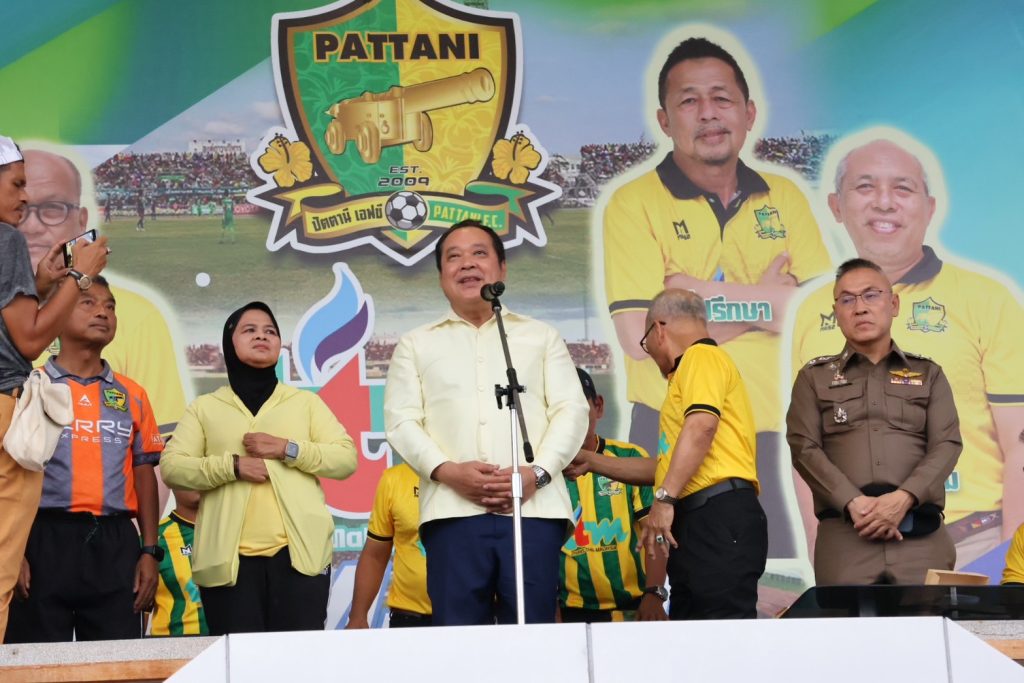ต่อเนื่องเวลาประมาณ 16.40 น. ร่วมพิธีเปิดการแข่งขันฟุตบอลไทยลีก ณ สนามกีฬา อบจ.ปัตตานี โดยมี พ.ต.อ.ทวี สอดส่อง รัฐมนตรีว่าการกระทรวงยุติธรรม เป็นประธาน และร่วมส่งคณะหลังเสร็จสิ้นภารกิจ