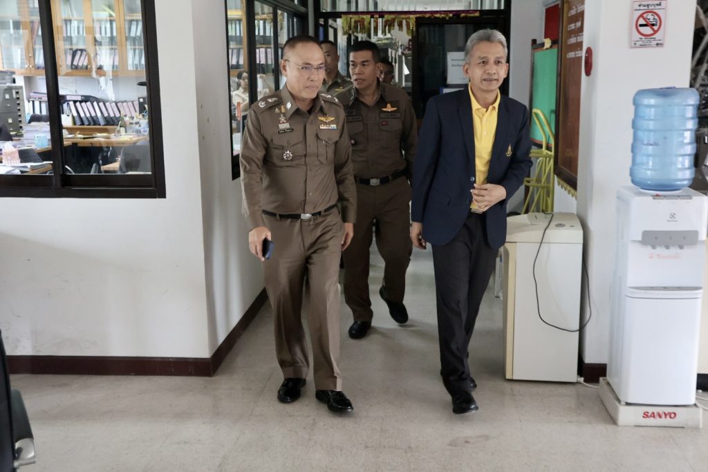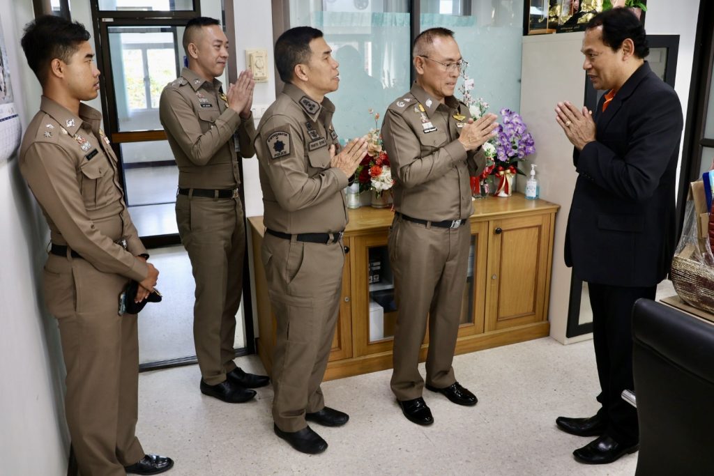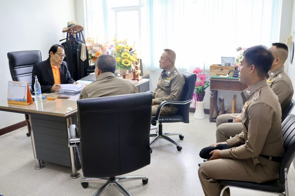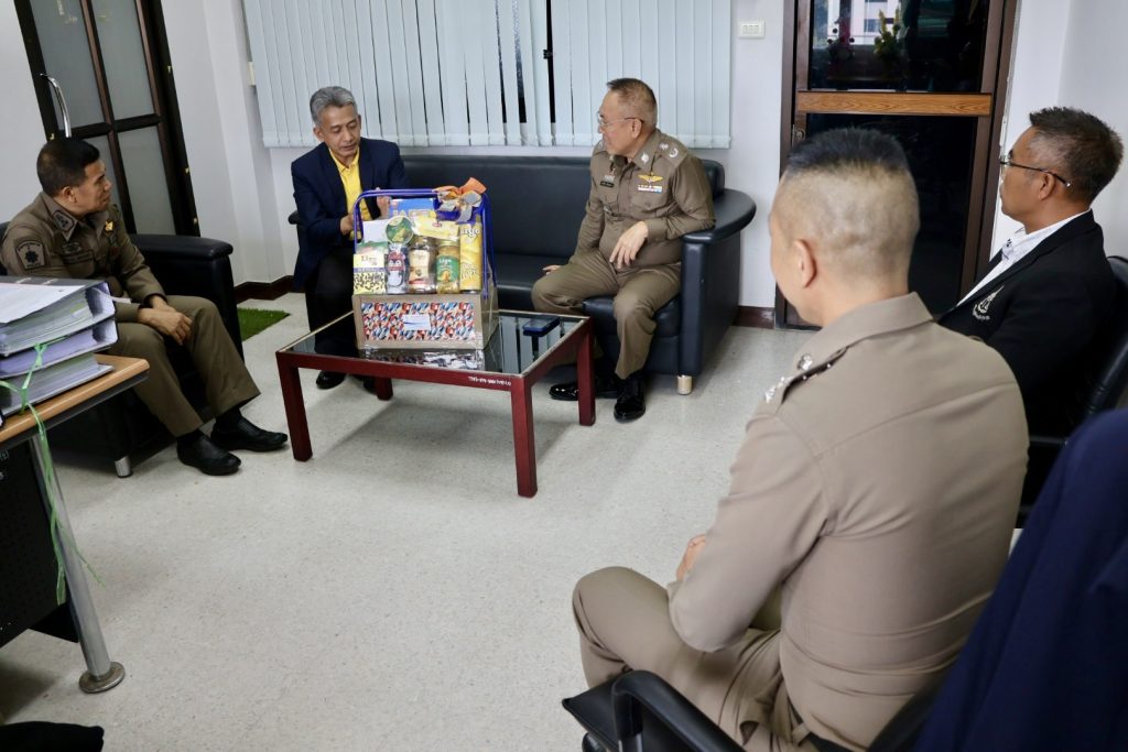 วันที่ 15 ม.ค.67 เวลา 15.30 น. พล.ต.ต.สันทัศน์ เชื้อพุฒตาล ผบก.ภ.จว.ปัตตานี, พ.ต.อ.กองอรรถ สุวรรณขำ รอง ผบก.ภ.จว.ปัตตานี, พ.ต.อ.อภิชา สุขประสงค์ ผกก.(สอบสวน) กลุ่มงานสอบสวน ภ.จว.ปัตตานี เดินทางเข้าพบ นายสมโชค ศรีคงแก้ว อัยการจังหวัดปัตตานี เเละ นายอารยะ กระโหมวงค์ อัยการพิเศษฝ่ายคดีอาญา 4 ภาค 9 พร้อมพูดคุยหารือและมอบกระเช้า ณ สำนักงานอัยการจังหวัดปัตตานี
