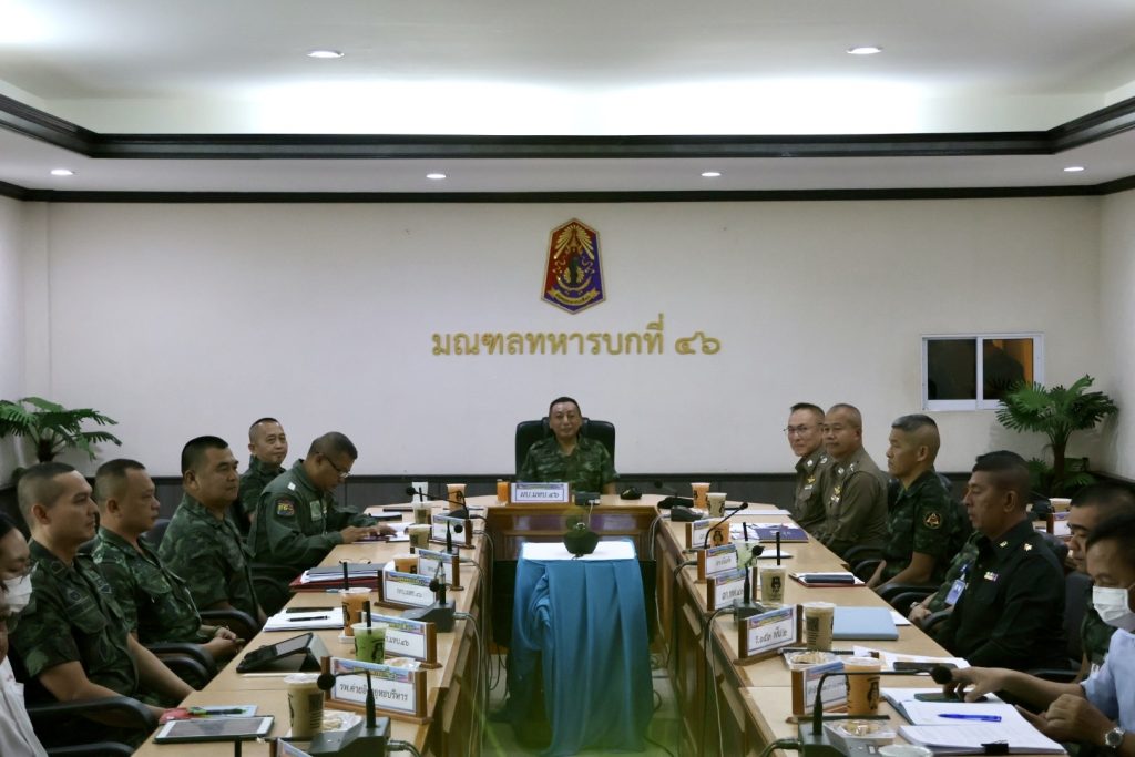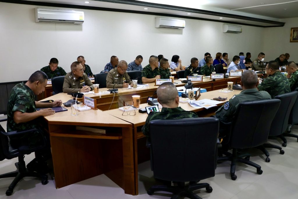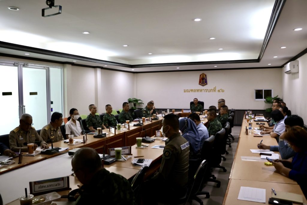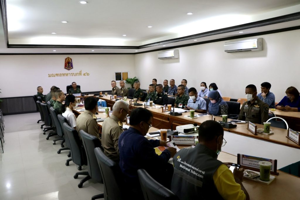 วันที่ 19 ม.ค.67 เวลา 10.00 น. พล.ต.ต.สันทัศน์ เชื้อพุฒตาล ผบก.ภ.จว.ปัตตานี, พ.ต.อ.ประยงค์ โคตรสาขา รอง ผบก.ภ.จว.ปัตตานี ร่วมประชุมเตรียมการรับเสด็จฯ สมเด็จพระเจ้าลูกเธอ เจ้าฟ้าสิริวัณณวรีฯ เสด็จทอดพระเนตรนิทรรศการและการจัดงานแสดงผลิตภัณฑ์ผ้าไทย และงานหัตถกรรมชุมชนภาคใต้ ในพื้นที่ จว.ปัตตานี โดยมี พล.ต.ขจรศักดิ์ อินทร์ทอง ผบ.มทบ.46 เป็นประธาน ณ ห้องประชุมขุนอิงคยุทธบริหาร บก.มทบ.46 ค่ายอิงคยุทธบริหาร จว.ปัตตานี