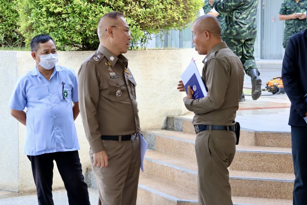 จากนั้นเวลา 14.00 น. ร่วมกับเจ้าหน้าที่ฝ่ายทหาร สำรวจพื้นที่เพื่อติดตามผลการดำเนินงานการเตรียมความพร้อมในการรับเสด็จฯ ณ อาคารแหล่งสมาคมนายทหารสัญญาบัตร กองพลทหารราบที่ 15 จว.ปัตตานี