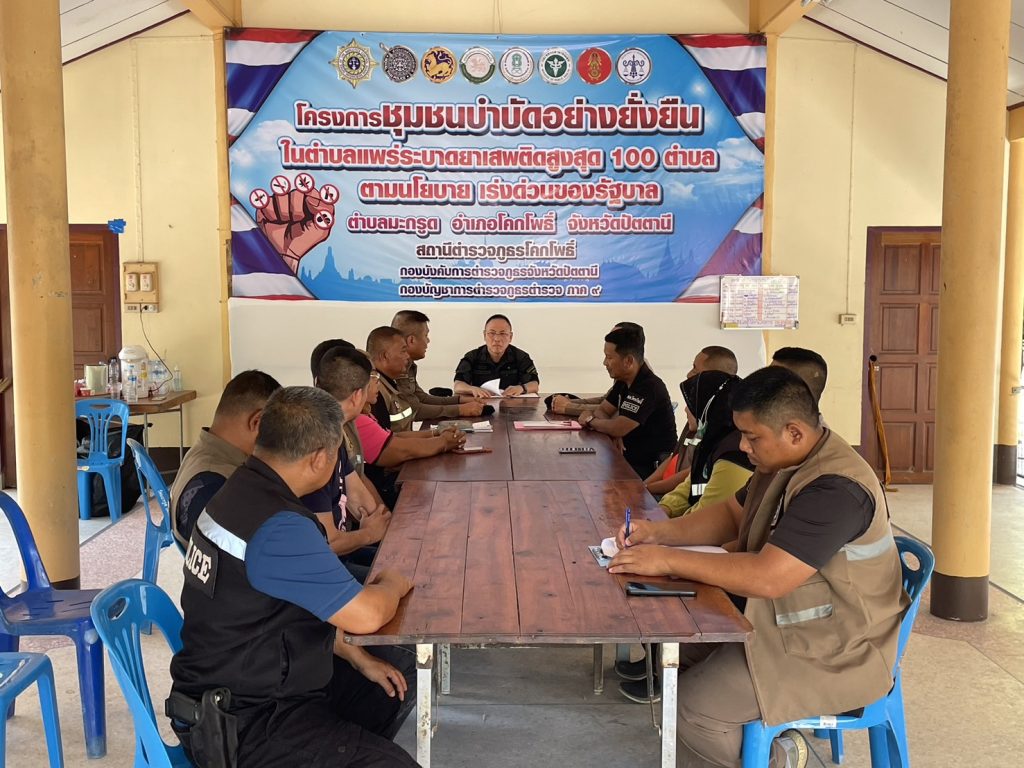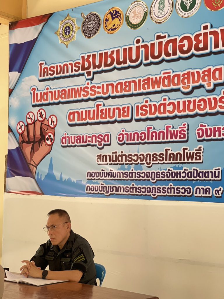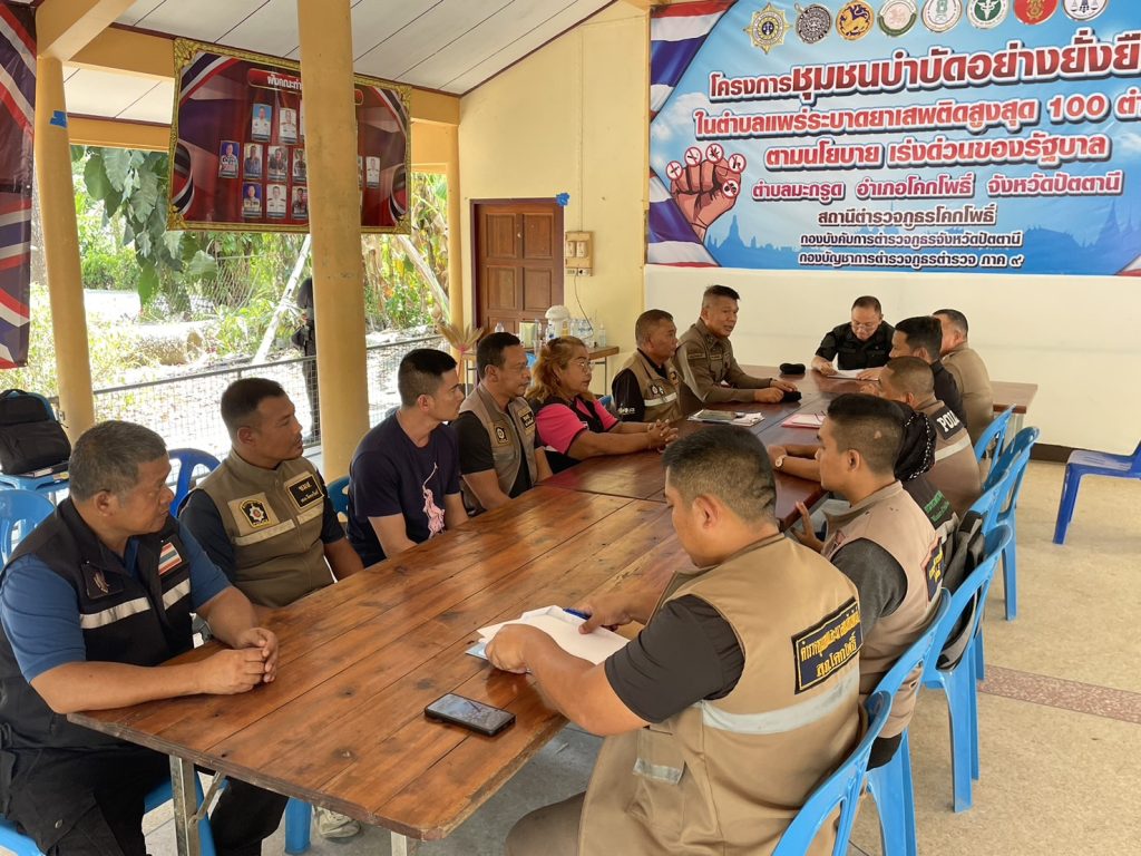 ร่วมพูดคุยและรับทราบผลการปฏิบัติในโครงการชุมชนบำบัดอย่างยั่งยืน ในตำบลมะกรูด อ.โคกโพธิ์ จ.ปัตตานี