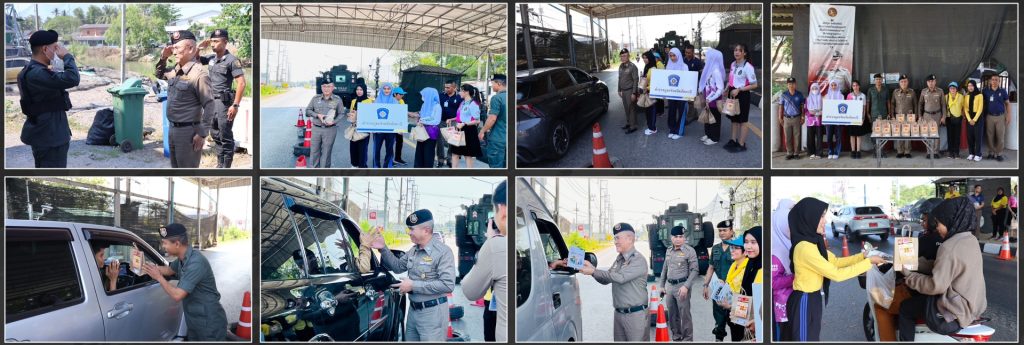 วันที่ 5 เม.ย.67 เวลา 14.00 น. พล.ต.ต.สันทัศน์ เชื้อพุฒตาล ผบก.ภ.จว.ปัตตานี, พ.ต.อ.เกียรติศักดิ์ กสิคุณ ผกก.ฝอ.ภ.จว.ปัตตานี, พ.ต.อ.เจฟฟรีย์ ไศลมานกุล ผกก.สภ.เมืองปัตตานี พร้อมด้วยข้าราชการตำรวจจิตอาสาในสังกัด ภ.จว.ปัตตานี ร่วมกิจกรรมจิตอาสาแจกชุดของขวัญละศีลอด เนื่องในโอกาสวันรายอ อิดิลฟิตตรี และเนื่องในวันสงกรานต์ 2567 ห้วง 7 วันอันตราย เพื่อประชาสัมพันธ์และเผยแพร่ความรู้ด้านวินัยจารจร รณรงค์ขับขี่ปลอดภัย ณ ด่านปราการ 1 แยกดอนรัก อ.เมือง จว.ปัตตานี