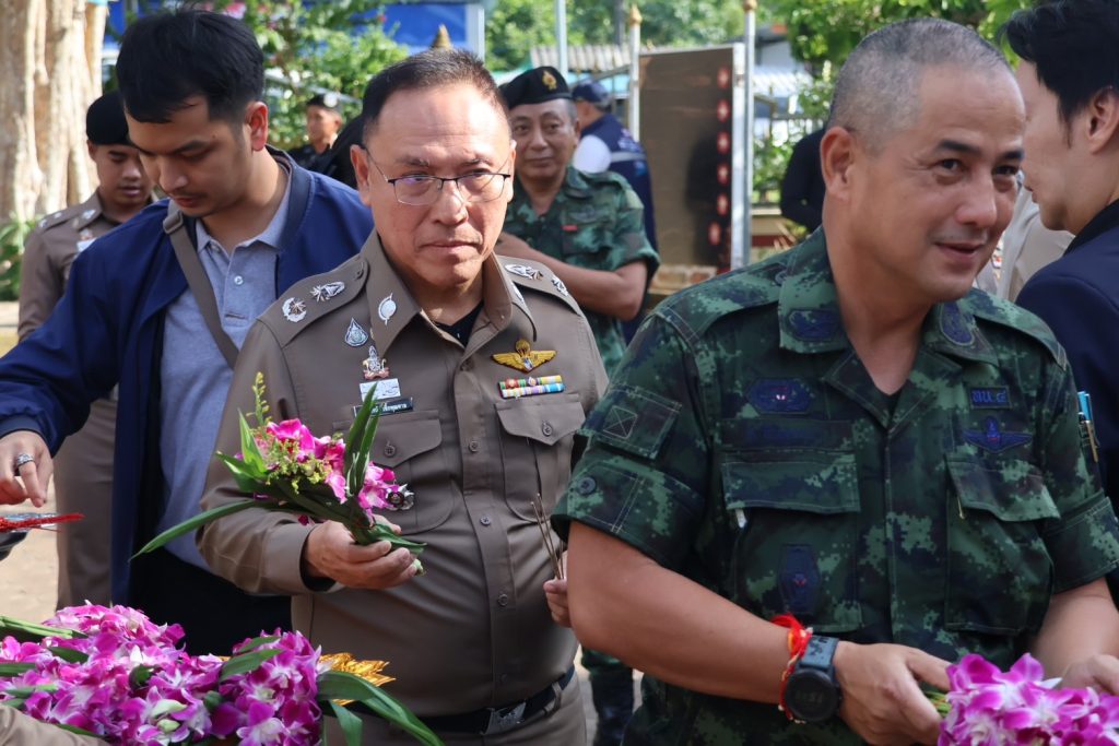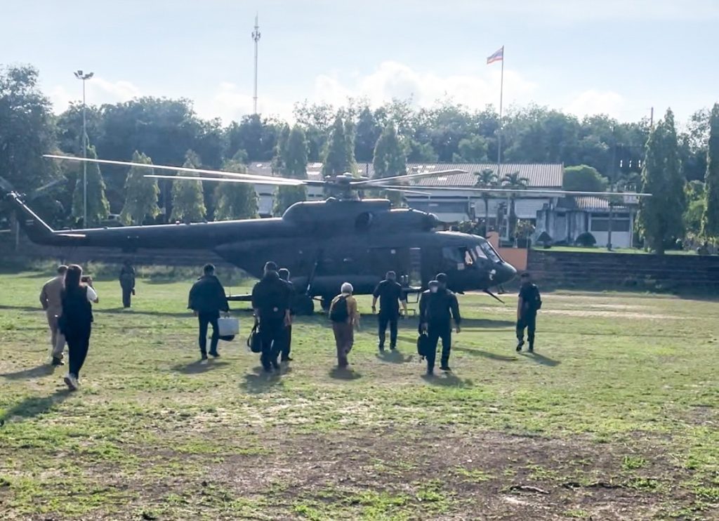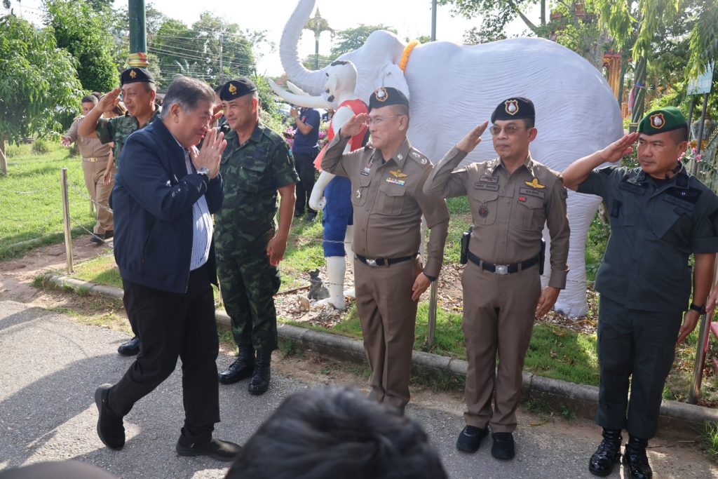 ณ วัดช้างให้ และร่วมส่งคณะหลังเสร็จสิ้นภารกิจในพื้นที่ ณ สนาม ฮ.ชั่วคราว โรงเรียนราชมุนีรังสฤษฏ์ อ.โคกโพธิ์ จว.ปัตตานี