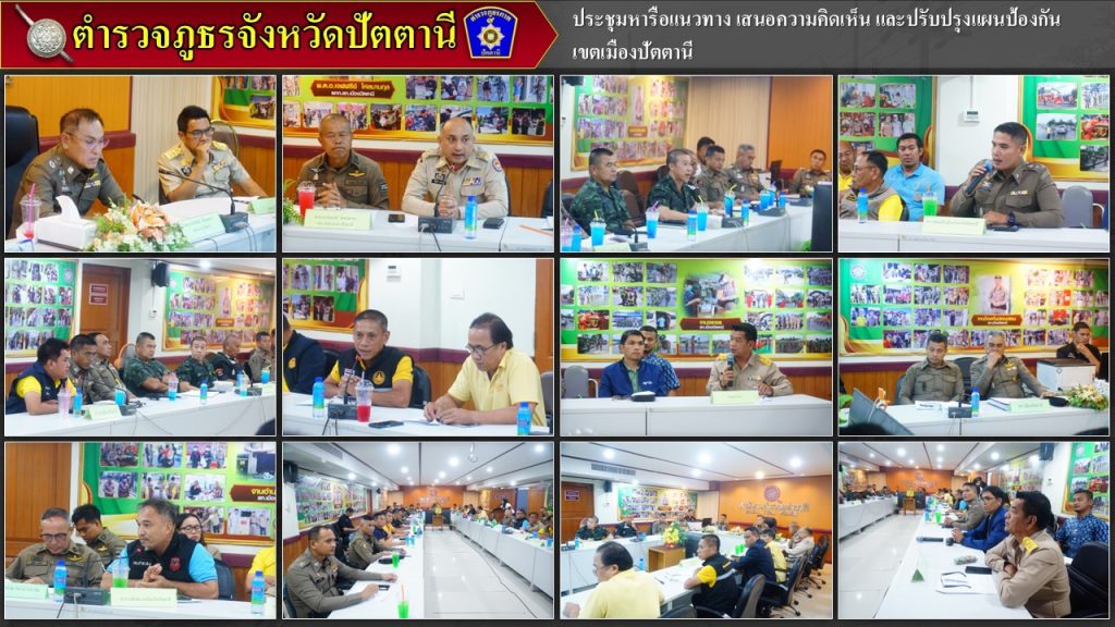 วันที่ 13 ส.ค.67 เวลา 13.30 น. พล.ต.ต.สันทัศน์ เชื้อพุฒตาล ผบก.ภ.จว.ปัตตานี, พ.ต.อ.ประยงค์ โคตรสาขา รอง ผบก.ภ.จว.ปัตตานี, พ.ต.อ.ภักดี ปรีชาชน รอง ผบก.ภ.จว.ปัตตานี, พ.ต.อ.กองทัพ เสนาทิพย์ ผกก.ปพ.ภ.จว.ปัตตานี, พ.ต.อ.เจฟฟรีย์ ไศลมานกุล ผกก.สภ.เมืองปัตตานี พร้อมด้วย ฝ่ายทหาร, ฝ่ายปกครอง และหน่วยงานทุกส่วนที่เกี่ยวข้อง ร่วมประชุมหารือแนวทาง เสนอความคิดเห็น และปรับปรุงแผนป้องกันเขตเมืองปัตตานี ณ ห้องประชุม ศปก.สภ.เมืองปัตตานี