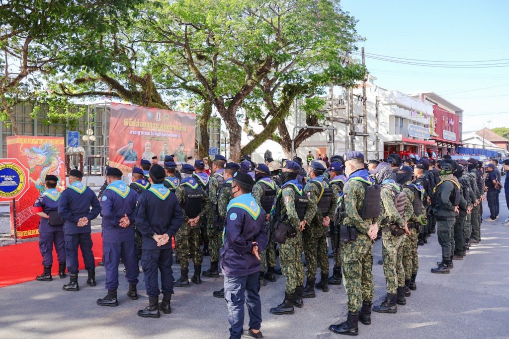 รอง ผบก.ภ.จว.ปัตตานี พร้อมด้วยเจ้าหน้าที่ตำรวจ, ทหาร, ฝ่ายปกครอง และกำลังภาคประชาชน ร่วมปล่อยแถว