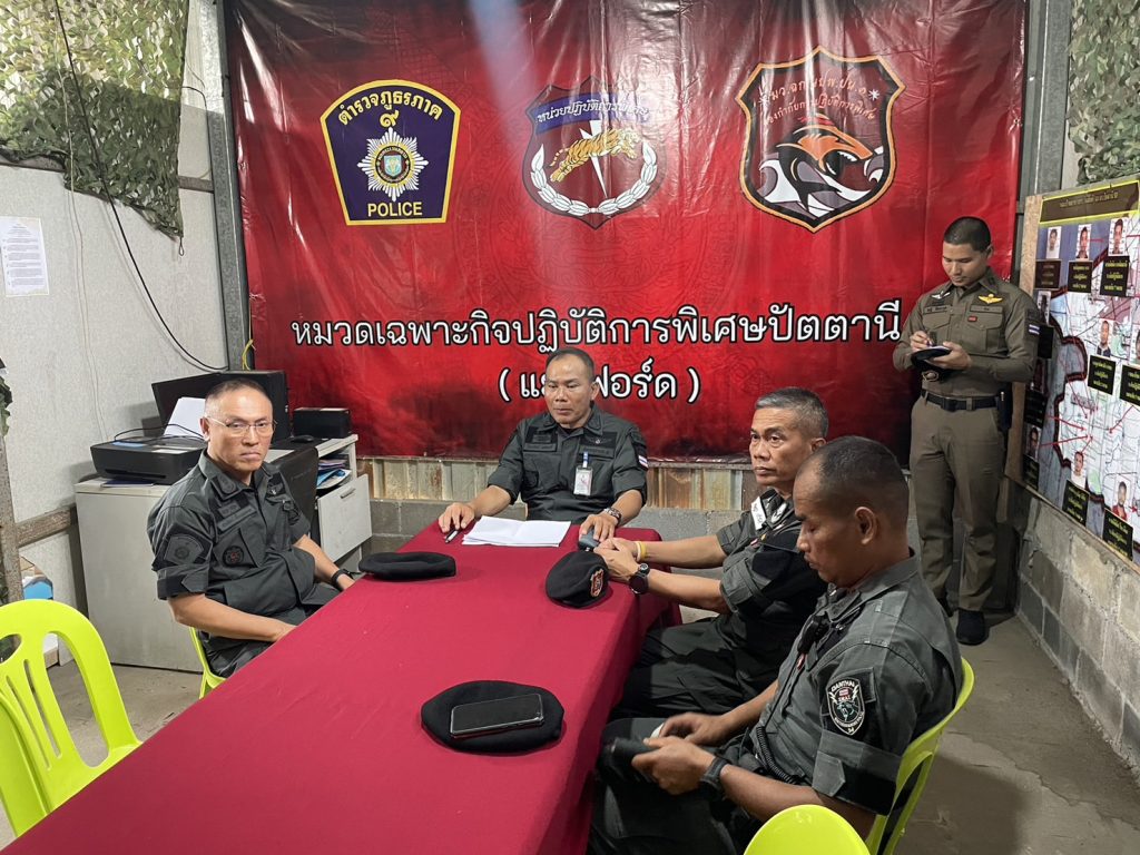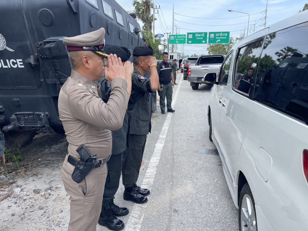 วันที่ 18 ม.ค.67 เวลา 13.00 น. พล.ต.ท.ปิยะวัฒน์ เฉลิมศรี ผบช.ภ.9, พล.ต.ต.กฤษฎา แก้วจันดี รอง ผบช.ภ.9, พล.ต.ต.สันทัศน์ เชื้อพุฒตาล ผบก.ภ.จว.ปัตตานี, พ.ต.อ.เจฟฟรีย์ ไศลมานกุล ผกก.สภ.เมืองปัตตานี, พ.ต.ท.วีระศักด์ เพอแสละ รอง ผบ.ฉก.ตร.ปัตตานี 92(2) ตรวจเยี่ยมด่านตรวจปราการ 1 (จุดตรวจ/จุดสกัดดอนรัก) ต่อเนื่องเวลา 14.00 น.