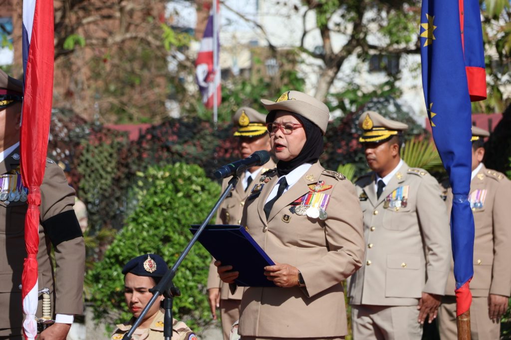 เมื่อวันที่ 10 ก.พ.69 เวลา 09.00 น. พ.ต.อ.อภิชา สุขประสงค์ รอง ผบก.ภ.จว.ปัตตานี, พ.ต.อ.เจฟฟรีย์ ไศลมานกุล ผกก.สภ.เมืองปัตตานี ร่วมเป็นเกียรติในพิธีชุมนุมผู้บังคับบัญชา เจ้าหน้าที่ และสมาชิกกองอาสารักษาดินแดน เนื่องในโอกาสการจัดกิจกรรมวันคล้ายวันสถาปนากองอาสารักษาดินแดน ครบรอบ 72 ปี ณ ลานศิลปวัฒนธรรมจังหวัดปัตตานี อ.เมือง จว.ปัตตานี