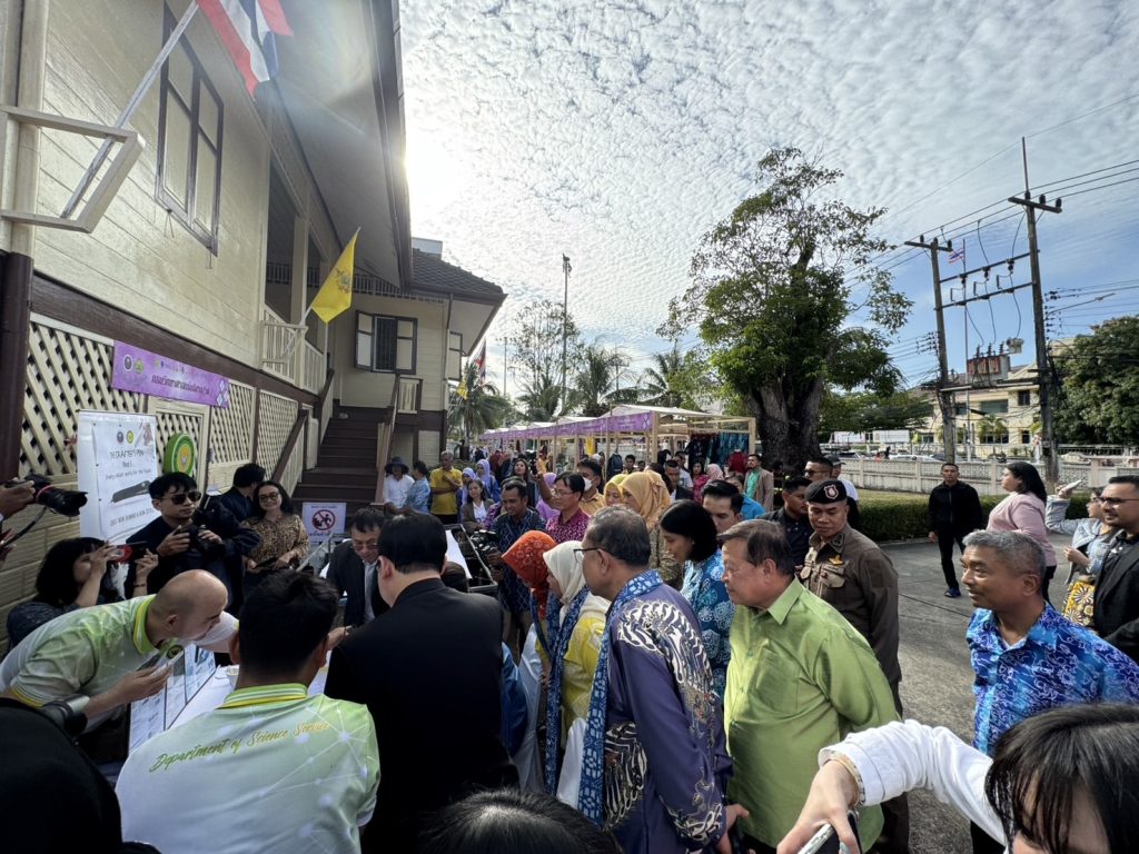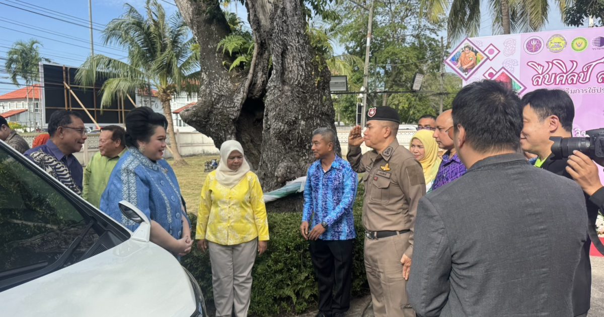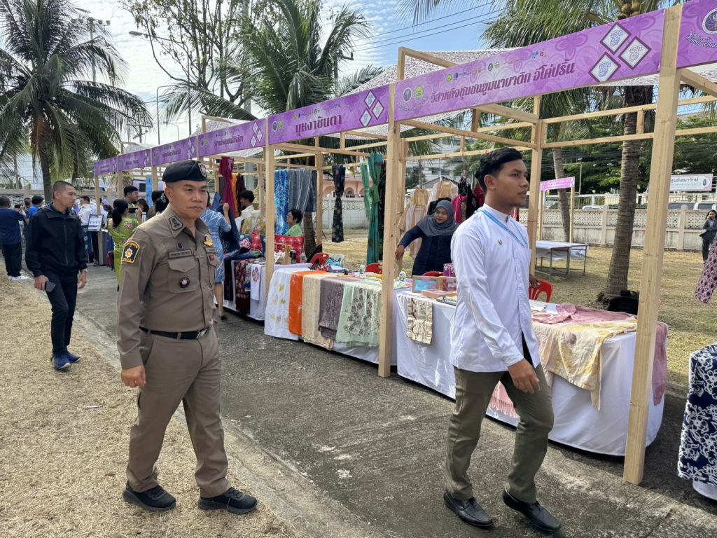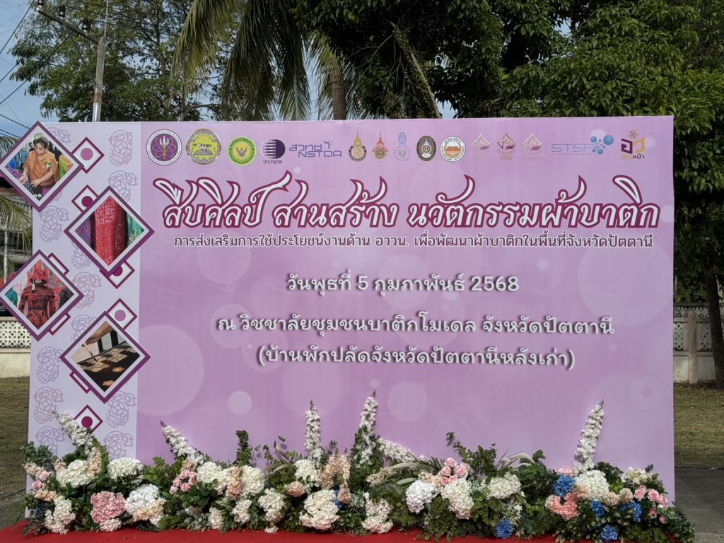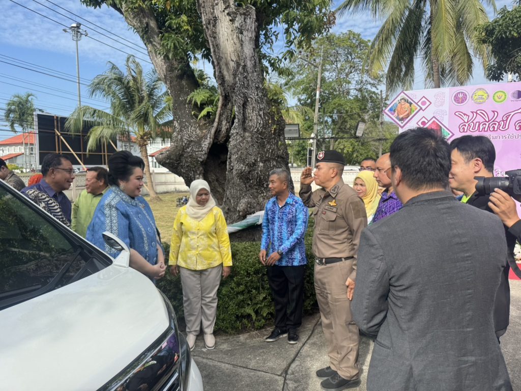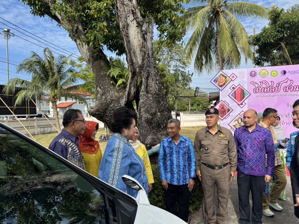 วันที่ 5 ก.พ.68 เวลา 16.10 น. พ.ต.อ.กองอรรถ สุวรรณขำ รอง ผบก.ภ.จว.ปัตตานี ร่วมให้การต้อนรับ นางสาวศุภมาส อิศรภักดี รัฐมนตรีว่าการกระทรวงการอุดมศึกษา วิทยาศาสตร์ วิจัยและนวัตกรรม เดินทางมาเป็นประธานเปิดงาน “สืบศิลป์ สานสร้าง นวัตกรรมผ้าบาติก” ภายใต้การส่งเสริมการใช้ประโยชน์งานด้านการอุดมศึกษา วิทยาศาสตร์ วิจัยและนวัตกรรม (อววน.) เพื่อพัฒนาผ้าบาติกในพื้นที่จังหวัดปัตตานี ณ วิชชาลัยบาติกโมเดล จังหวัดปัตตานี (บ้านพักปลัดจังหวัดปัตตานีหลังเก่า)
