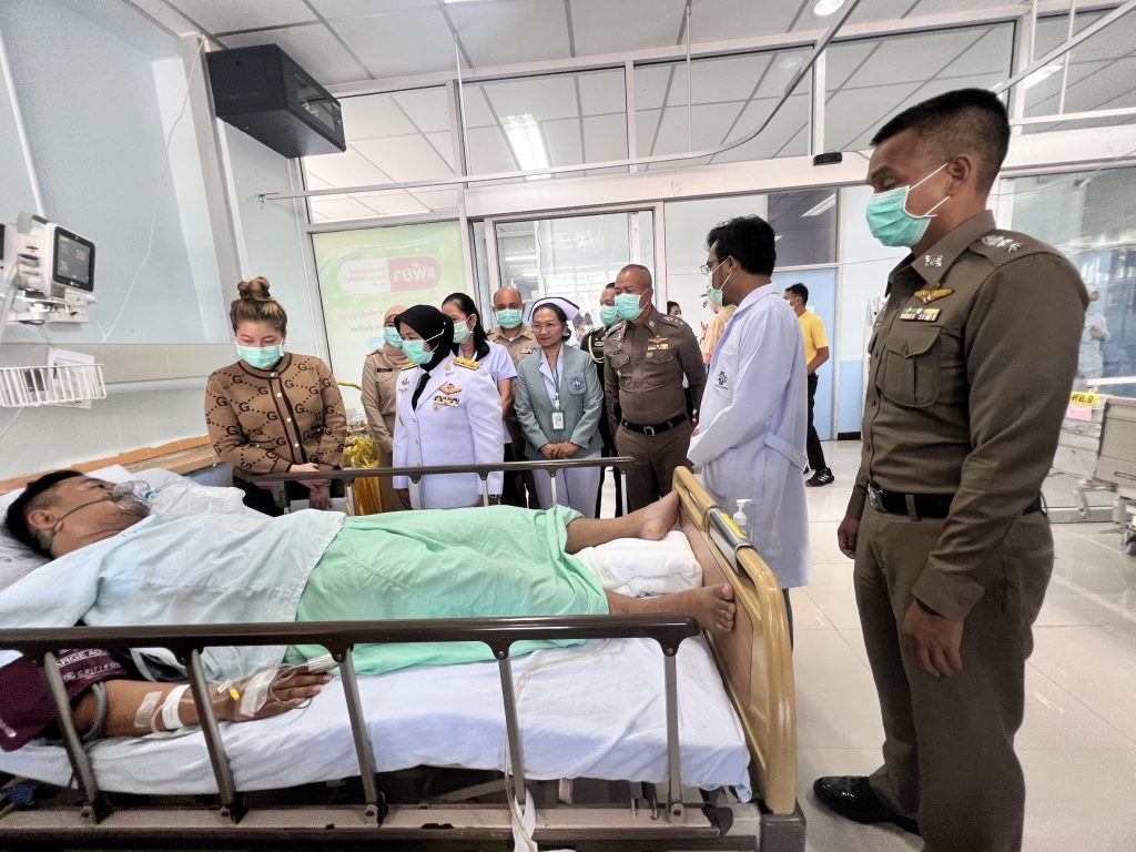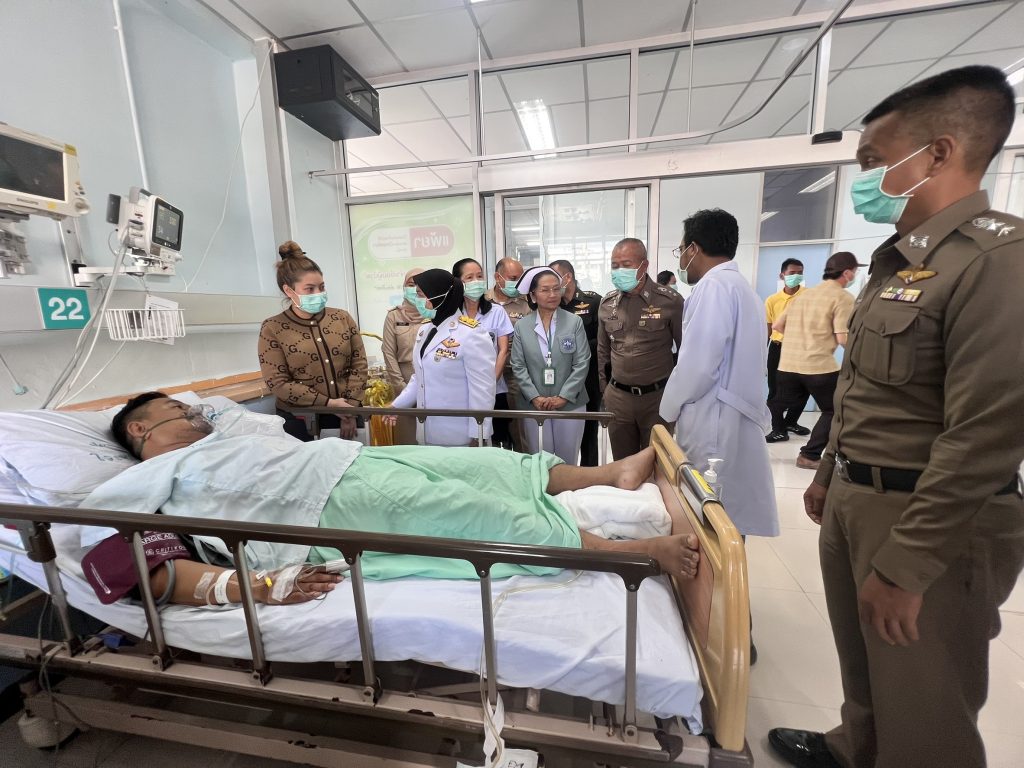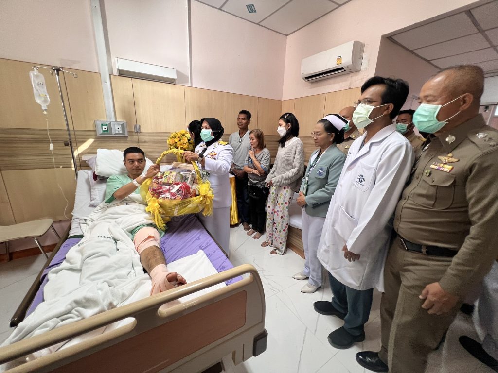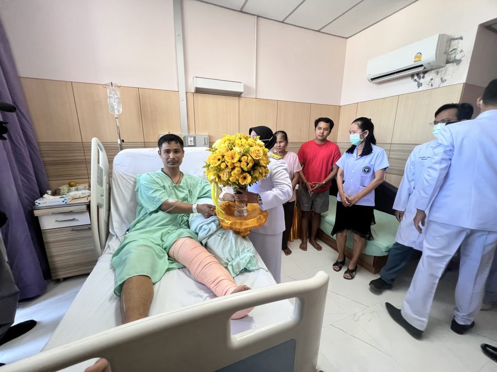 วันที่ 8 ก.พ.68 เวลา 08.30 น. พ.ต.อ.ประยงค์ โคตรสาขา รอง ผบก.ภ.จว.ปัตตานี, พ.ต.อ.พัฒนชัย ปาละสุวรรณ ผกก.สภ.หนองจิก ร่วมพิธีเชิญแจกันดอกไม้ และตะกร้าสิ่งของพระราชทานแก่ผู้ได้รับบาดเจ็บ โดยมี นางพาตีเมาะ