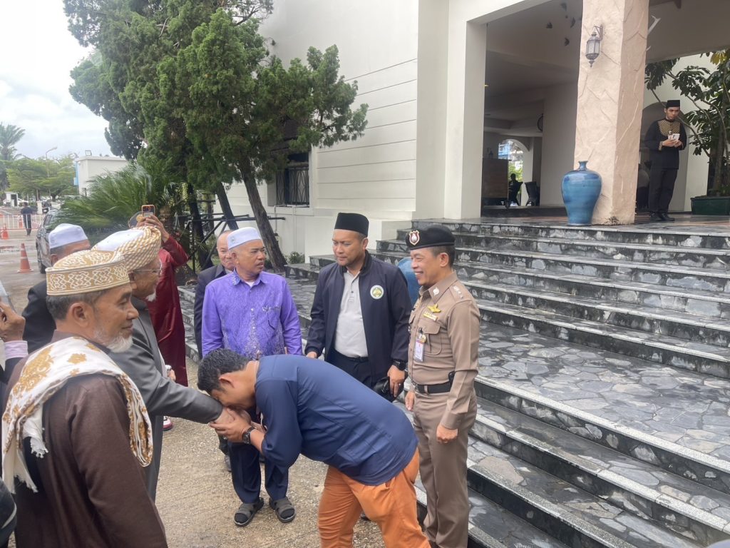 วันที่ 24 ก.พ.2568 เวลา 15.30 น. พ.ต.อ.พงษ์พันธ์ จันทรอาภา รอง ผบก.ภ.จว.ปัตตานี ร่วมให้การต้อนรับ นายอรุณ บุญชม จุฬาราชมนตรี และคณะ เดินทางมาปฏิบัติภารกิจในพื้นที่จังหวัดปัตตานี ณ โรงแรม ซี.เอส.ปัตตานี