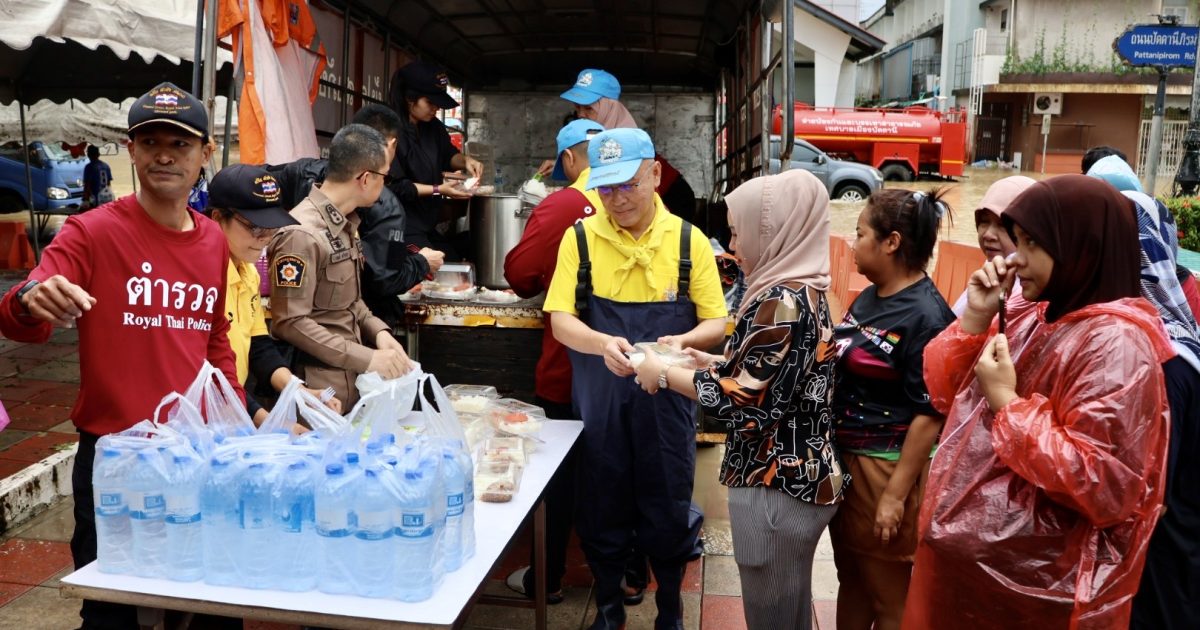 วันที่ 29 พ.ย.67 เวลา 09.00 น. ภายใต้อำนวยการของ พล.ท.ปิยะวัฒน์ เฉลิมศรี ผบช.ภ.9 มอบหมายให้ พล.ต.ต.สันทัศน์ เชื้อพุฒตาล ผบก.ภ.จว.ปัตตานี, พ.ต.อ.เจฟฟรีย์ ไศลมานกุล ผกก.สภ.เมืองปัตตานี, พ.ต.อ.เกียรติศักดิ์ กสิคุณ ผกก.ฝอ.ภ.จว.ปัตตานี พร้อมด้วยข้าราชการตำรวจฝ่ายอำนวยการตำรวจภูธรจังหวัดปัตตานี และ สภ.เมืองปัตตานี โดย พล.ต.ท.ปิยะวัฒน์ เฉลิมศรี ผบช.ภ.9 ได้ให้การสนับสนุนอาหาร นํ้าดื่ม และจัดเตรียมรถครัวสนาม, วัตถุดิบในการประกอบอาหาร เดินทางไปยัง สภ.เมืองปัตตานี เพื่อประกอบอาหารเลี้ยงให้กับประชาชนที่ได้รับความเดือดร้อนจาก