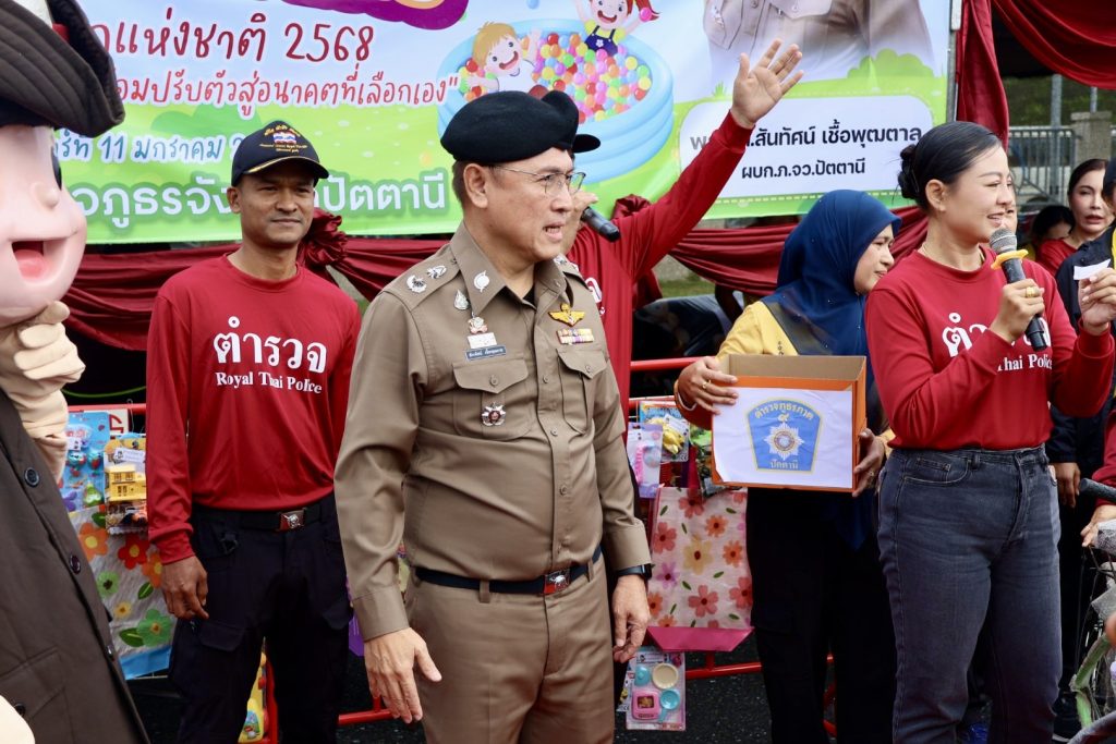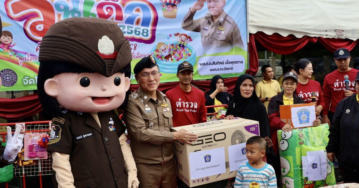 วันที่ 11 ม.ค.68 เวลา 08.00 น. พล.ต.ต.สันทัศน์ เชื้อพุฒตาล ผบก.ภ.จว.ปัตตานี, พ.ต.อ.เกียรติศักดิ์ กสิคุณ ผกก.ฝอ.ภ.จว.ปัตตานี พร้อมด้วยข้าราชการตำรวจภูธรจังหวัดปัตตานี ร่วมจัดกิจกรรมงานวันเด็กแห่งชาติ ประจำปี 2568