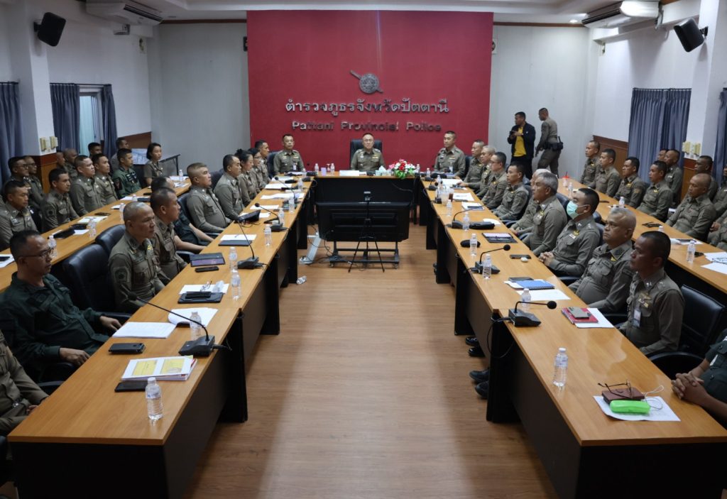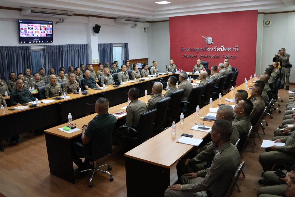 เมื่อวันที่ 22 ต.ค.68 เวลา 14.00 น. พล.ต.ต.สันทัศน์ เชื้อพุฒตาล ผบก.ภ.จว.ปัตตานี, พ.ต.อ.พงษ์พันธ์ จันทรอาภา รอง ผบก.ภ.จว.ปัตตานี, พ.ต.อ.ศุภกร พึ่งรศ รอง ผบก.ภ.จว.ปัตตานี, พ.ต.อ.สิทธิพงษ์ หัสรังษี รอง ผบก.ภ.จว.ปัตตานี พร้อมด้วย ผกก.ฝอ.ฯ, หัวหน้าหน่วย, หัวหน้า สภ., ฝ่ายอำนวยการ ภ.จว.ปัตตานี ทุกแผนกงาน และผู้ที่มีส่วนเกี่ยวข้อง ประชุมแถลงแผนถวายความปลอดภัย พระบาทสมเด็จพระเจ้าอยู่หัว และสมเด็จพระนางเจ้าฯ พระบรมราชินี เสด็จพระราชดำเนินทรงปฏิบัติพระราชกรณียกิจในพื้นที่ จว.ปัตตานี ในวันอาทิตย์ที่ 26 ต.ค.68 ผ่านระบบ VTC ณ ห้องประชุม ภ.จว.ปัตตานี