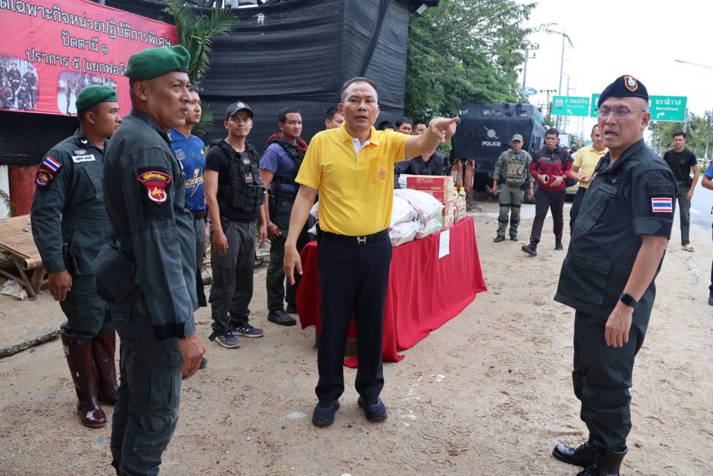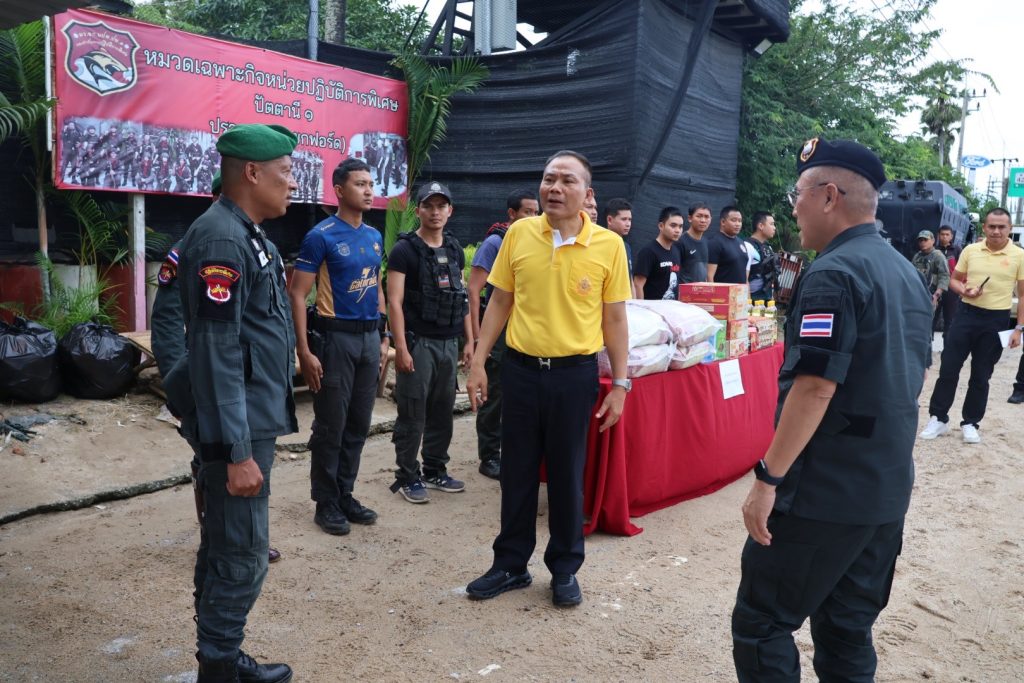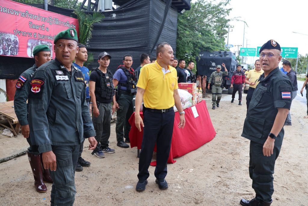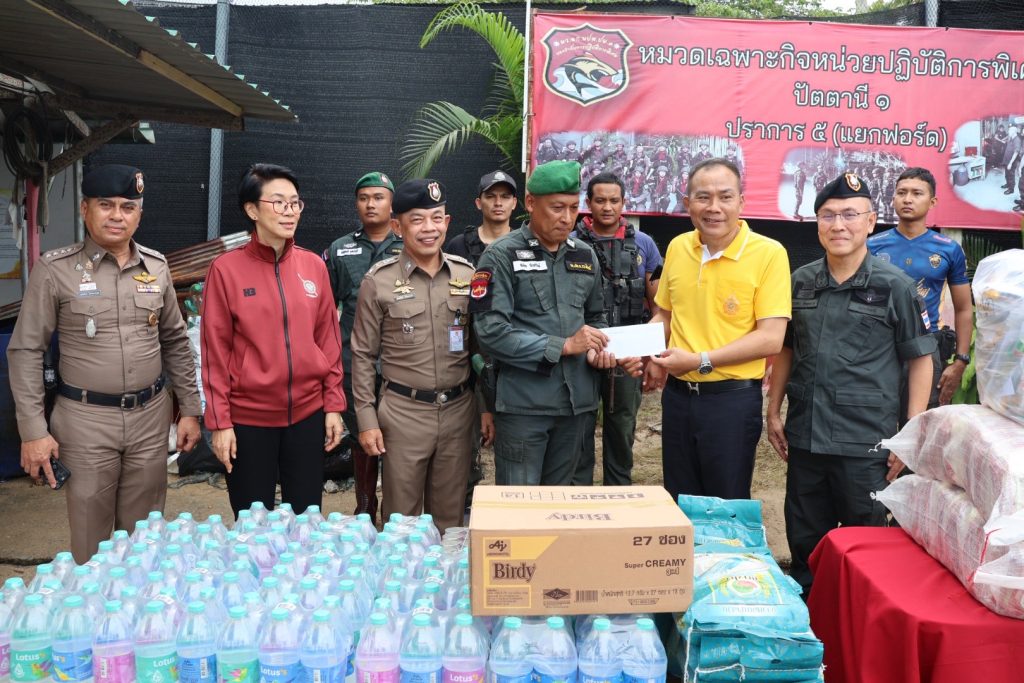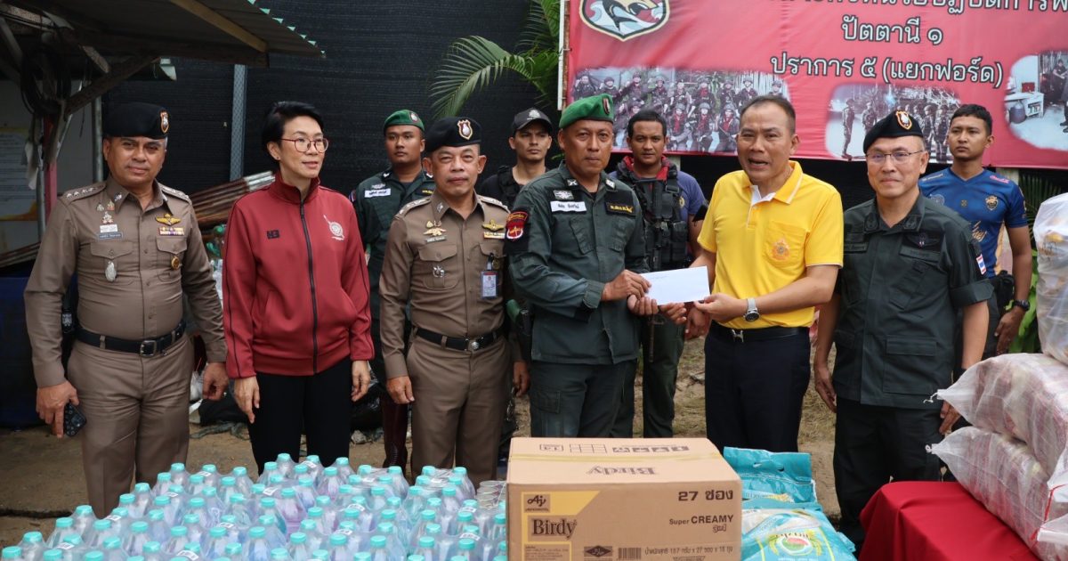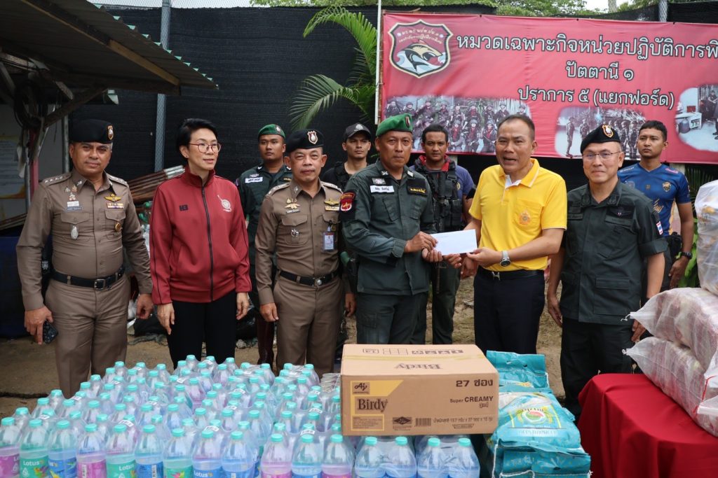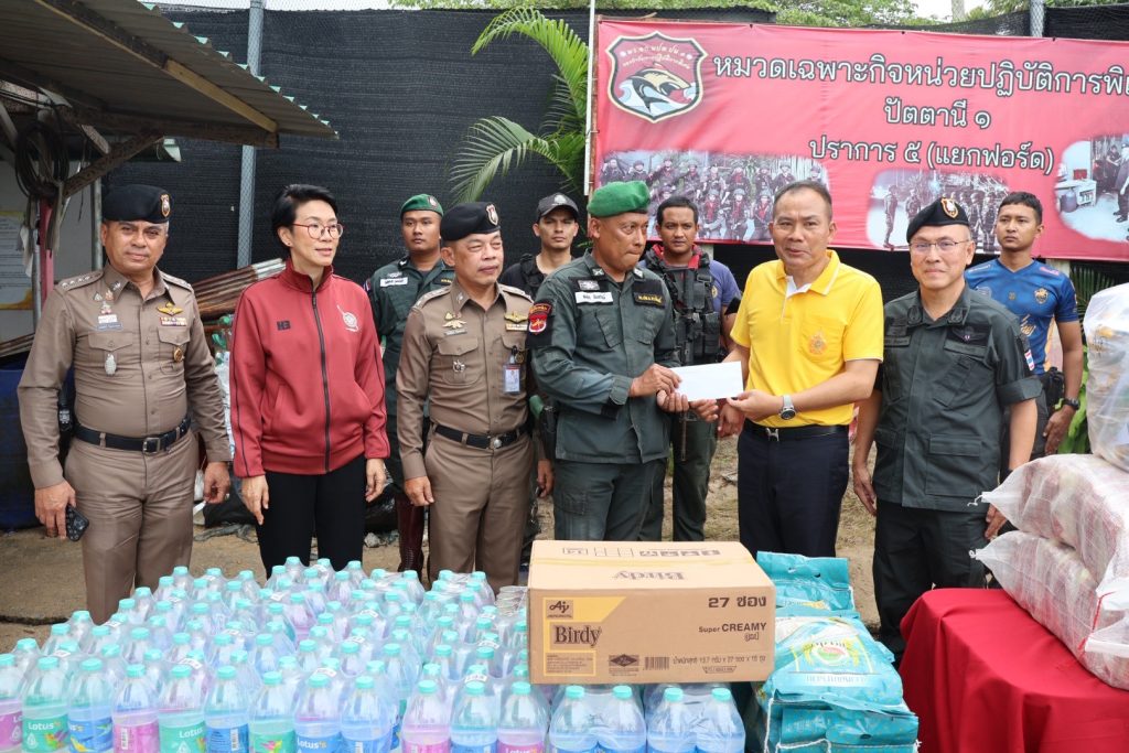 วันที่ 5 ธ.ค.67 เวลา 14.00 น. พล.ต.ท.ปิยะวัฒน์ เฉลิมศรี ผบช.ภ.9, พล.ต.ท.หญิง อาภาพรรณ ชลศึกษ์ ประธานชมรมแม่บ้านตำรวจภูธรภาค 9, พล.ต.ต.สันทัศน์ เชื้อพุฒตาล ผบก.ภ.จว.ปัตตานี, พ.ต.อ.พงษ์พันธ์ จันทรอาภา รอง ผบก.จว.ปัตตานี, พ.ต.อ.เจฟฟรีย์ ไศลมานกุล ผกก.สภ.เมืองปัตตานี มอบสิ่งของอุปโภคบริโภคเพื่อเป็นขวัญกำลังใจให้กับข้าราชการตำรวจ หมวดเฉพาะกิจหน่วยปฏิบัติการพิเศษปัตตานี 1 ปราการ 5 (แยกฟอร์ด)