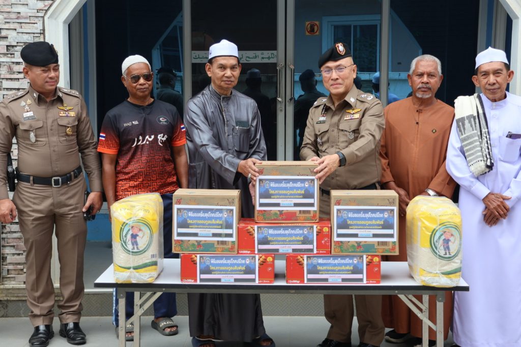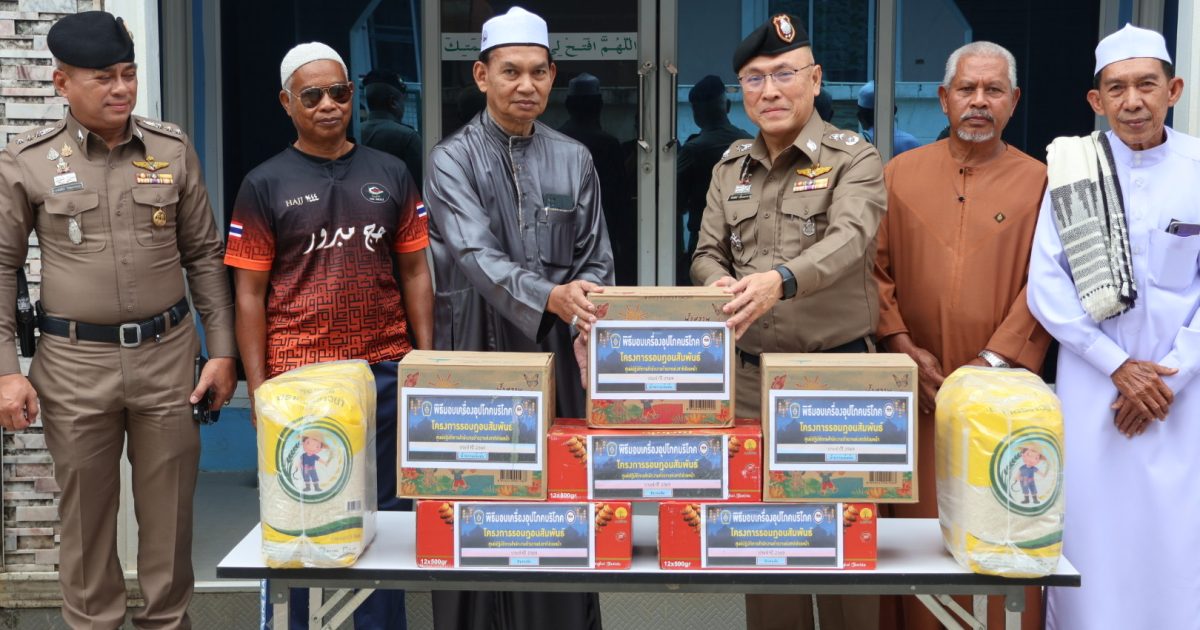 เมื่อวันที่ 21 ก.พ.69 เวลา 09.30 น. พล.ต.ท.ปิยะวัฒน์ เฉลิมศรี ผบช.ภ.9 มอบหมายให้ พล.ต.ต.สันทัศน์ เชื้อพุฒตาล ผบก.ภ.จว.ปัตตานี, พ.ต.อ.เจฟฟรีย์ ไศลมานกุล ผกก.สภ.เมืองปัตตานี พร้อมด้วยข้าราชการตำรวจ ฝอ.ภ.จว.ปัตตานี และ สภ.เมืองปัตตานี ร่วมมอบเครื่องอุปโภคบริโภคให้กับผู้นำศาสนาและประชาชน ในห้วงเดือนรอมฎอน ฮ.ศ.1447 ประจำปี 2569 ณ มัสยิดนูรุลลุตฟี จะรังบาตู ต.รูสะมิแล อ.เมือง จว.ปัตตานี