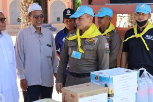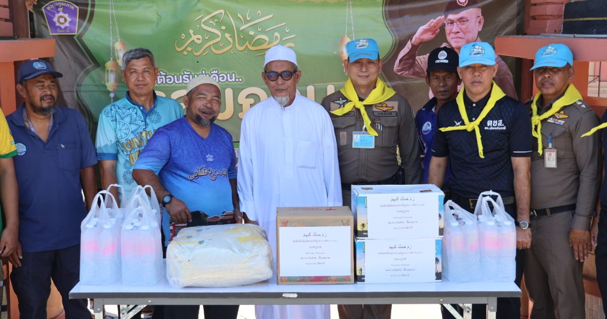 เมื่อวันที่ 4 มี.ค.69 เวลา 14.30 น. พ.ต.อ.สนธยา ธูปทอง รอง ผบก.ภ.จว.ปัตตานี พร้อมด้วย ข้าราชการตำรวจชุดจิตอาสาชุมชนสัมพันธ์ สภ.เมืองปัตตานี, ข้าราชการตำรวจงานกิจการพลเรือน ฝอ.ภ.จว.ปัตตานี ร่วมมอบเครื่องอุปโภคบริโภคแก่ โต๊ะอีหม่าม คอเต็บ และบิหลั่น เนื่องในโอกาสเดือนรอมฎอน ฮ.ศ.1447 ประจำปี 2569 ณ มัสยิดรายอฟาฏอนี ต.จะบังติกอ อ.เมือง จว.ปัตตานี