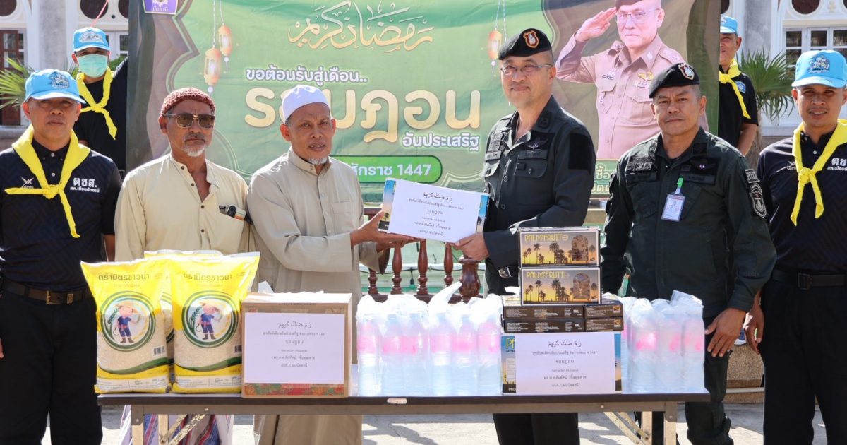 เมื่อวันที่ 12 มี.ค.69 เวลา 15.00 น. พ.ต.อ.ศุภกร พึ่งรศ รอง ผบก.ภ.จว.ปัตตานี พร้อมด้วยข้าราชการตำรวจ ฝอ.ภ.จว.ปัตตานี และ สภ.เมืองปัตตานี ร่วมมอบเครื่องอุปโภคบริโภคให้แก่โต๊ะอีหม่าม รอย๊ะ หวันโส๊ะ โต๊ะอีหม่ามประจำมัสยิดกลางจังหวัดปัตตานี เพื่อส่งเสริมการแบ่งปัน และสร้างความสุข เนื่องในโอกาสเดือนรอมฎอนอันประเสริฐ ฮ.ศ.1447 ประจำปี 2569 ณ มัสยิดกลางจังหวัดปัตตานี อ.เมือง จว.ปัตตานี