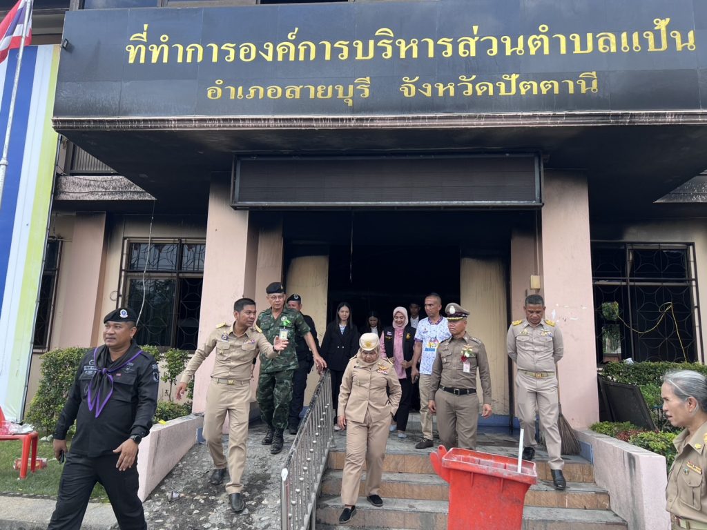 วันที่ 28 มิ.ย.68 เวลา 14.00 น. พ.ต.อ.ประยงค์ โคตรสาขา รอง ผบก.ภ.จว.ปัตตานี ร่วมกับ นางพาตีเมาะ สะดียามู ผู้ว่าราชการจังหวัดปัตตานี และคณะ ลงพื้นที่ตรวจที่เกิดเหตุ อบต.แป้น อ.สายบุรี จว.ปัตตานี พร้อมตรวจเยี่ยมและให้กำลังใจเจ้าหน้าที่ อส.ชุดคุ้มครองตำบลแป้น อ.สายบุรี และพบปะพี่น้องประชาชนเพื่อสร้างขวัญกำลังใจ