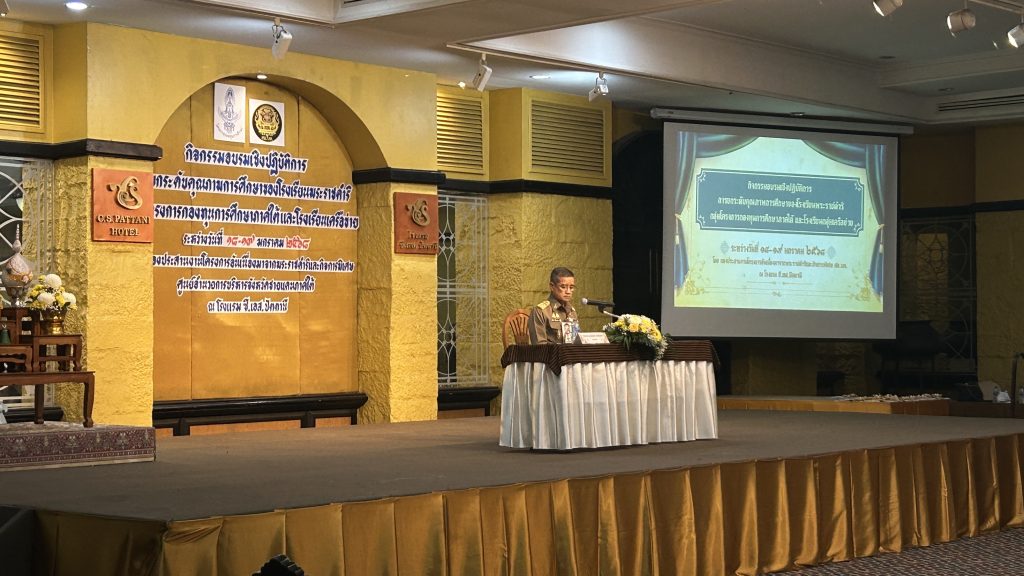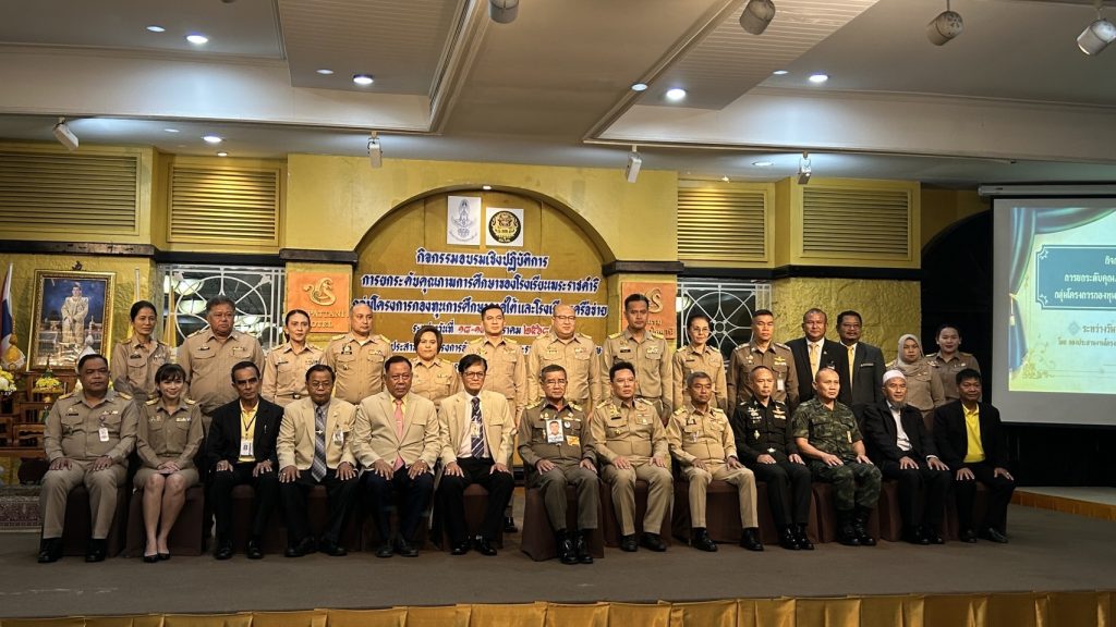 วันที่ 18 ม.ค.68 เวลา 09.00 น. พ.ต.อ.กองอรรถ สุวรรณขำ รอง ผบก.ภ จว.ปัตตานี ร่วมเป็นเกียรติในพิธีเปิดกิจกรรมอบรมเชิงปฏิบัติการยกระดับคุณภาพการศึกษาของโรงเรียนพระราชดำริ กลุ่มโครงการกองทุนการศึกษาภาคใต้และโรงเรียนเครือข่าย โดยมี พล.อ.เฉลิมชัย สิทธิสาท องคมนตรี เป็นประธาน ณ ห้องน้ำพราวบอลรูม โรงแรม ซี.เอส.ปัตตานี