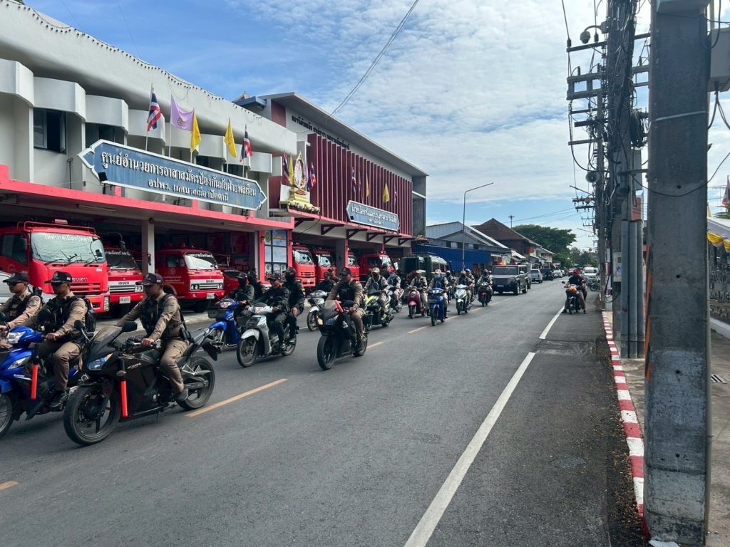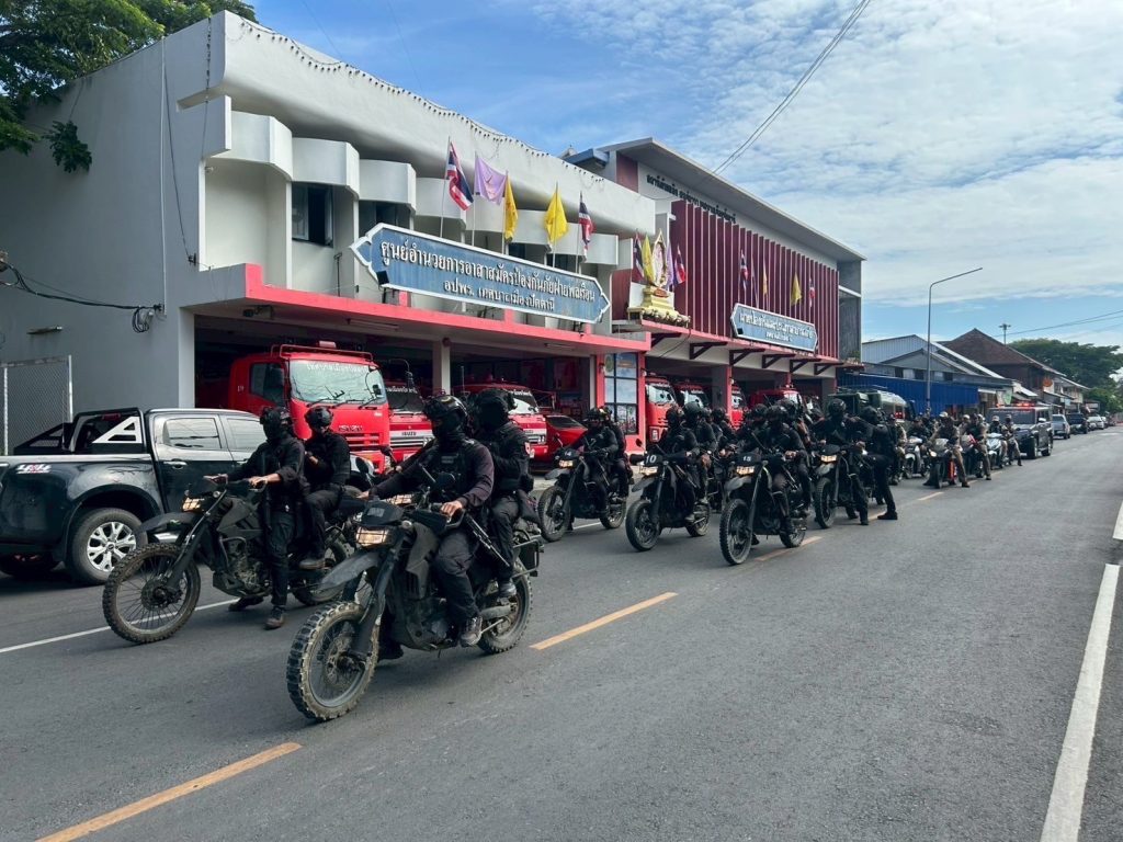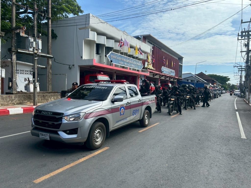 วันที่ 15 ก.ค.68 เวลา 09.00 น. พ.ต.อ.ศุภกร พึ่งรศ รอง ผบก.ภ.จว.ปัตตานี เป็นประธานปล่อยแถวแผนปิดเมืองขั้นที่ 3 (เพื่อป้องกัน เฝ้าระวัง และสกัดกั้นกลุ่มผู้ก่อเหตุรุนแรงเข้ามาหลบซ่อนตัวเพื่อเตรียมก่อเหตุในพื้นที่อำเภอเมืองปัตตานี เนื่องจากมีภาพข่าวการเคลื่อนไหว ของ ผกร. ในพื้นที่เขตรอยต่อ และเกิดสถานการณ์ความไม่สงบอย่างต่อเนื่อง) โดยมี พ.ต.อ.เจฟรีย์ ไศลมานกุล ผกก.สภ.เมืองปัตตานี, พ.อ.สิทธิศักดิ์ แก้วทองประคำ รอง หน.ฝยก.ฉก.ปัตตานี, พ.ต.อ.ฟาฮามี เฮ็งปิยา ผบ.ฉก.ตร.ปัตตานี 92/ผกก.ปพ.ภ.จว.ปัตตานี พร้อมด้วยเจ้าหน้าที่ 3 ฝ่าย เข้าร่วม ณ บริเวณหน้า สภ.เมืองปัตตานี ต.อาเนาะรู อ.เมือง จว.ปัตตานี