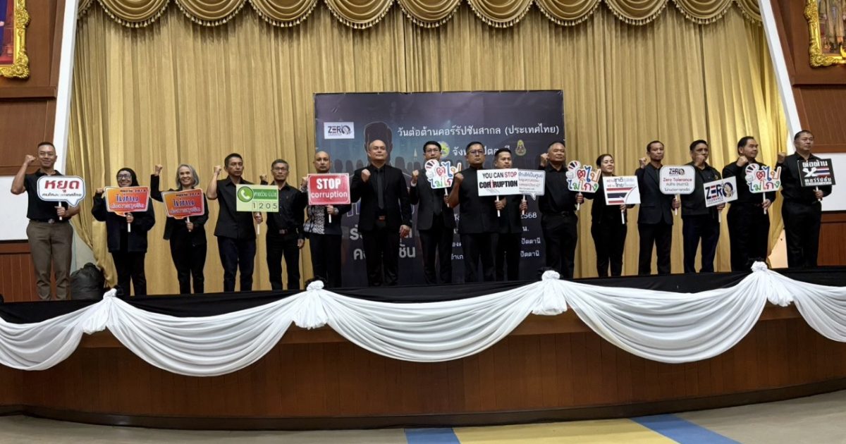 เมื่อวันที่ 9 ธ.ค.68 เวลา 08.30 น. พ.ต.อ.อภิชา สุขประสงค์ รอง ผบก.ภ.จว.ปัตตานี เข้าร่วมรับชมการประกาศเจตนารมณ์เนื่องในงานวันต่อต้านคอร์รัปชันสากล (ประเทศไทย) ของ นายอนุทิน ชาญวีรกูล นายกรัฐมนตรี และรัฐมนตรีว่าการกระทรวงมหาดไทย และกิจกรรมอื่น และร่วมประชุมคณะกรรมการผลักดันการดำเนินงานตามแผนแม่บทภายใต้ยุทธศาสตร์ชาติ ประเด็นการต่อต้านการทุจริตและประพฤติมิชอบจังหวัดปัตตานี ครั้งที่ 1/2568 ณ หอประชุมองค์การบริหารส่วนจังหวัดปัตตานี