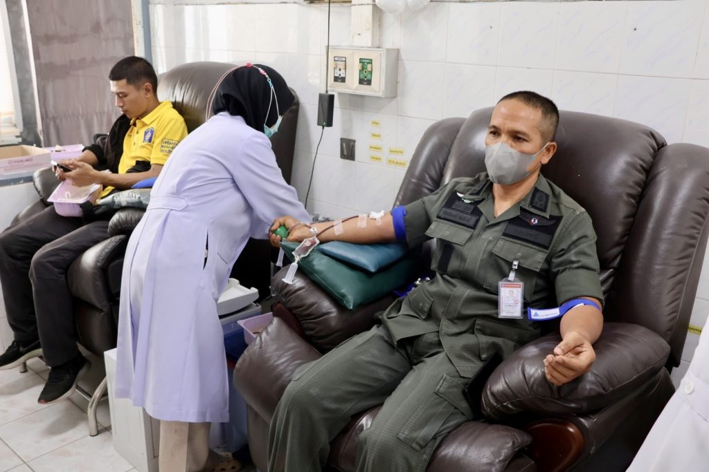 วันที่ 15 พ.ค.68 เวลา 13.30 น. พ.ต.อ.สิทธิพงษ์ หัสรังษี รอง ผบก.ภ.จว.ปัตตานี พร้อมข้าราชการตำรวจจิตอาสา และคณะแม่บ้านตำรวจภูธรจังหวัดปัตตานี ร่วมบริจาคโลหิตเพื่อนำไปช่วยเหลือผู้ได้รับบาดเจ็บจากสถานการณ์ความไม่สงบในพื้นที่ ณ โรงพยาบาลปัตตานี