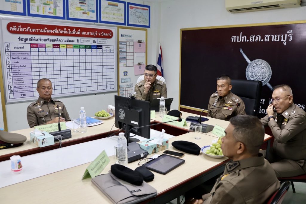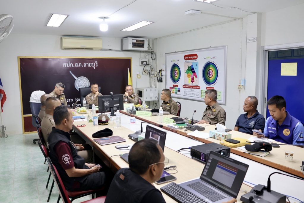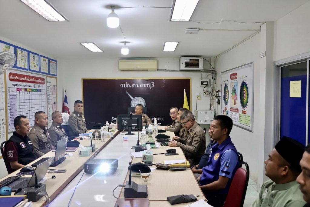 วันที่ 2 เม.ย.68 เวลาประมาณ 13.00 น. พล.ต.ต.กฤษฎา แก้วจันดี รอง ผบช.ภ.9, พล.ต.ต.วรา เวชชาภินันท์ รอง ผบช.ภ.9, พล.ต.ต.สันทัศน์ เชื้อพุฒตาล ผบก.ภ.จว.ปัตตานี, พ.ต.อ.กองอรรถ สุวรรณขำ รอง ผบก.ภ.จว.ปัตตานี, พ.ต.อ.ประยงค์ โคตรสาขา รอง ผบก.ภ.จว.ปัตตานี, พ.ต.อ.ธีรพจน์ ยินดี ผกก.สภ.สายบุรี พร้อมเจ้าหน้าที่ 3 ฝ่าย และส่วนเกี่ยวข้อง ร่วมประชุมหารือและติดตามสถานการณ์ การจัดกิจกรรม MELAYU RAYA 2025 “Green Melayu,Suci Patani” (Pemudi) ณ หาดวาสุกรี ต.ตะลุบัน อ.สายบุรี จว.ปัตตานี ณ ศปก.สภ.สายบุรี