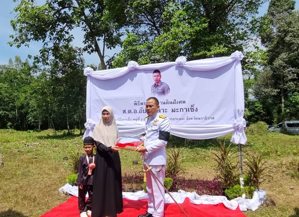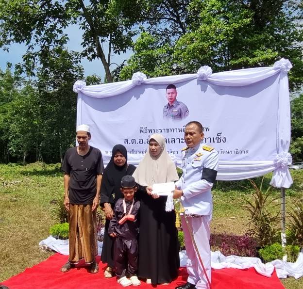 วันที่ 2 มิ.ย.68 เวลา 09.30 – 12.00 น. พ.ต.อ.ประยงค์ โคตรสาขา รอง ผบก.ภ.จว.ปัตตานี ร่วมพิธีพระราชทานดินฝังศพกรณีพิเศษ ส.ต.อ.อับดุลเลาะ มะกาเซ็ง ผบ.หมู่(ทำหน้าที่ปฏิบัติการป้องกันปราบปราม) สภ.จะแนะ จว.นราธิวาส โดยมี ว่าที่ร้อยตรี ตระกูล โทธรรม ผู้ว่าราชการจังหวัดนราธิวาส เป็นประธาน พร้อมมอบเงินแก่ทายาทเพื่อเป็นขวัญกำลังใจ ณ กูโบร์บือราเอ็บ หมู่ที่ 2 ต.กาลิซา อ.ระแงะ จ.นราธิวาส