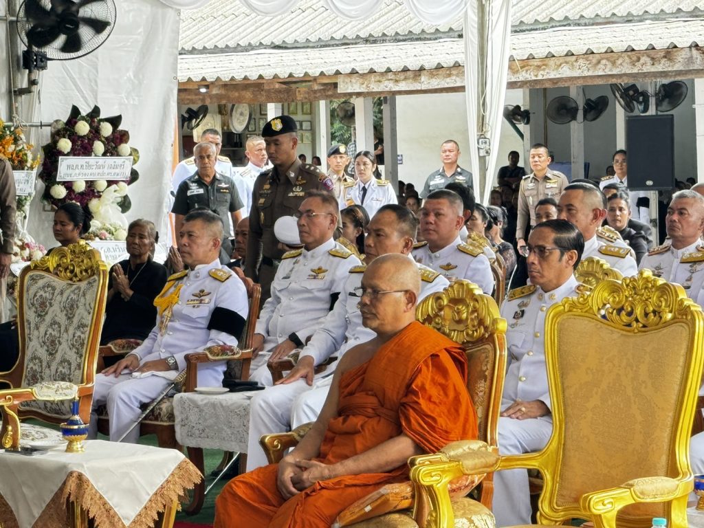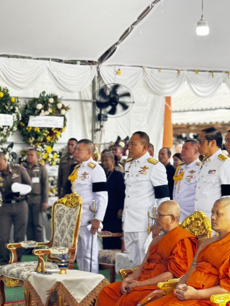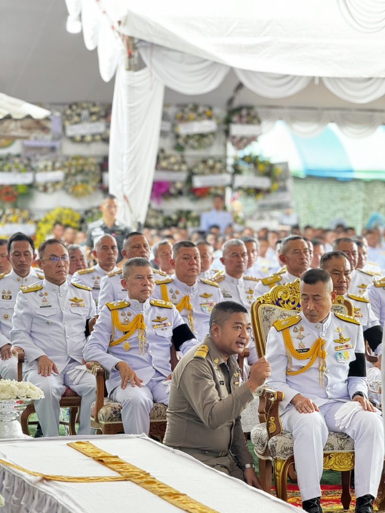 วันที่ 19 ต.ค.67 เวลาประมาณ 12.00 – 15.30 น. พล.ต.ท.สำราญ นวลมา ผู้ช่วย ผบ.ตร., พล.ต.ท.ปิยะวัฒน์ เฉลิมศรี ผบช.ภ.9, พล.ต.ต.สันทัศน์ เชื้อพุฒตาล ผบก.ภ.จว.ปัตตานี, พ.ต.อ.กองทัพ เสนาทิพย์ ผกก.ปพ.ภ.จว.ปัตตานีร่วมพิธีพระราชทานเพลิงศพ ด.ต.บรรเจิด พุทธเจริญ ผบ.หมู่ กก.ตชด.41 ณ วัดเขาพัง อ.บ้านตาขุน จว.สุราษฎร์ธานี