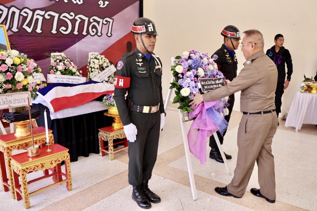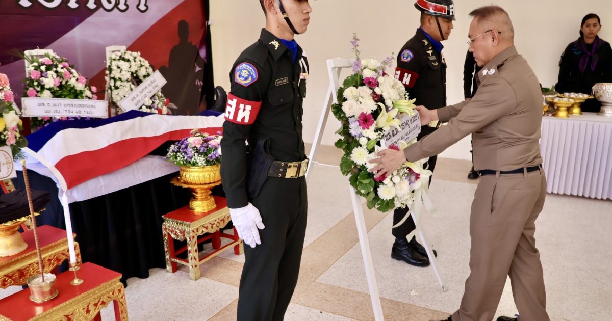 วันที่ 26 ธ.ค.67 เวลา 13.00 น. ภายใต้การอำนวยการของ พล.ต.อ.กิตติ์รัฐ พันธุ์เพ็ชร์ ผบ.ตร., พล.ต.ท.สำราญ นวลมา ผู้ช่วย ผบ.ตร., พล.ต.ท.ปิยะวัฒน์ เฉลิมศรี ผบช.ภ.9 มอบหมายให้ พล.ต.ต.สันทัศน์ เชื้อพุฒตาล ผบก.ภ.จว.ปัตตานี, พ.ต.อ.พัฒนชัย ปาละสุวรรณ ผกก.สภ.หนองจิก ร่วมพิธีรดน้ำศพ พิธีพระราชทานน้ำหลวงอาบศพ และพิธีเชิญพวงมาลาของพระบาทสมเด็จพระเจ้าอยู่หัวและพระบรมราชินี แก่ อส.ทพ.ไพโรจน์ ปราบปราม สังกัด ฉก.ทพ.44 ซึ่งเสียชีวิตขณะปฏิบัติหน้าที่ เมื่อ 25 ธ.ค.67 ณ วัดสุวรรณากร ต.บ่อทอง อ.หนองจิก จว.ปัตตานี